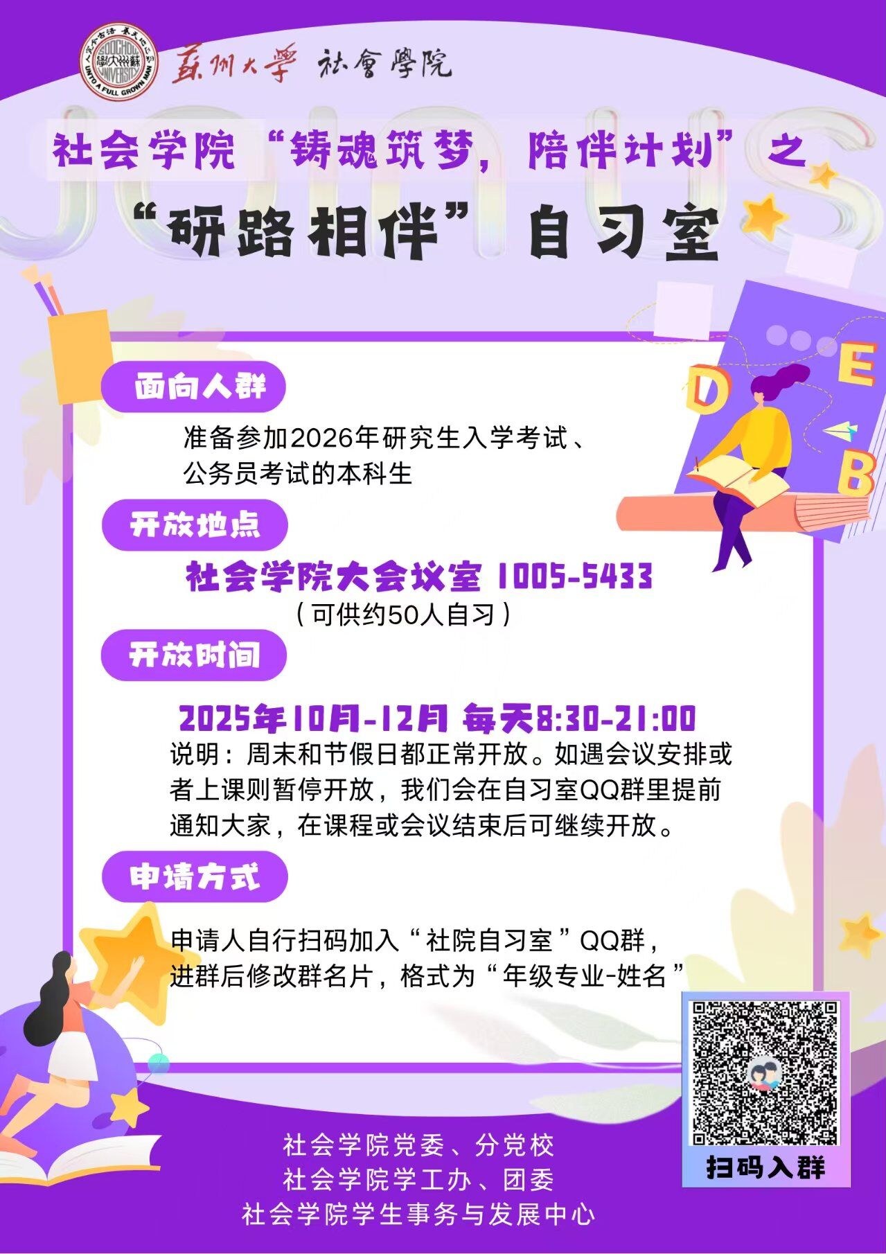 社会学院 “铸魂筑梦 ,陪伴计划 ”之“研路相伴”自习室