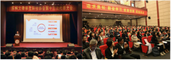报告简要介绍了学生科协围绕学术登高、创新创业、科技文化、社会实践、组织建设等五大板块在过去两年取得的工作成果。着重结合代表们反映的意见建议规划未来两年的工作:一是创新科技文化活动的内容和形式,开展更“接地气的”的校园活动;二是积极适应 “掌上一代”青年的行为习惯,打造说得响、传的远的学生科协传声筒;三是提升创就业服务能力,为有更多更广需求的同学提供有力的帮助;四是增强组织活力,提升组织建设科学化水平;五是要围绕学校中心工作,加强学风建设,营造优良校园学术氛围;六是加强学生科协作风建设,传播青春正能量。