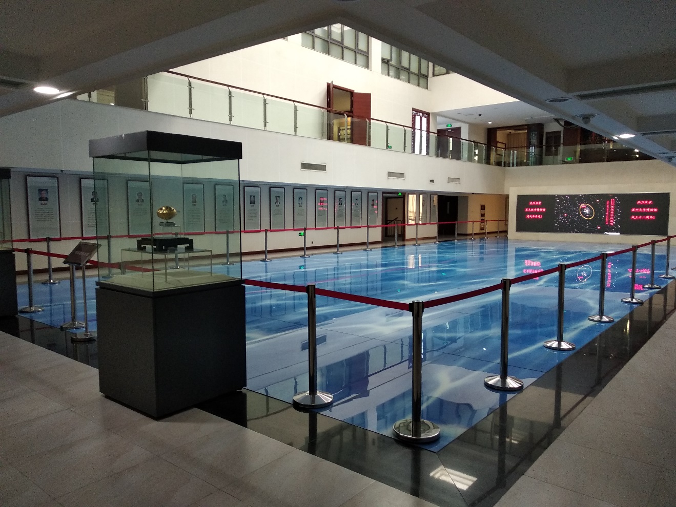 司马德游泳池展厅南北墙面原是滚动灯箱,经过设计改造后现已成为介绍开云唯一官网_开云(中国)有限公司53位院士生平的特色展厅,明亮的顶部灯带与底部玻璃的蓝色波纹交相辉映,一幅幅院士的像片镜框齐正肃穆地环绕四周,场面壮观,令人竦然动容。