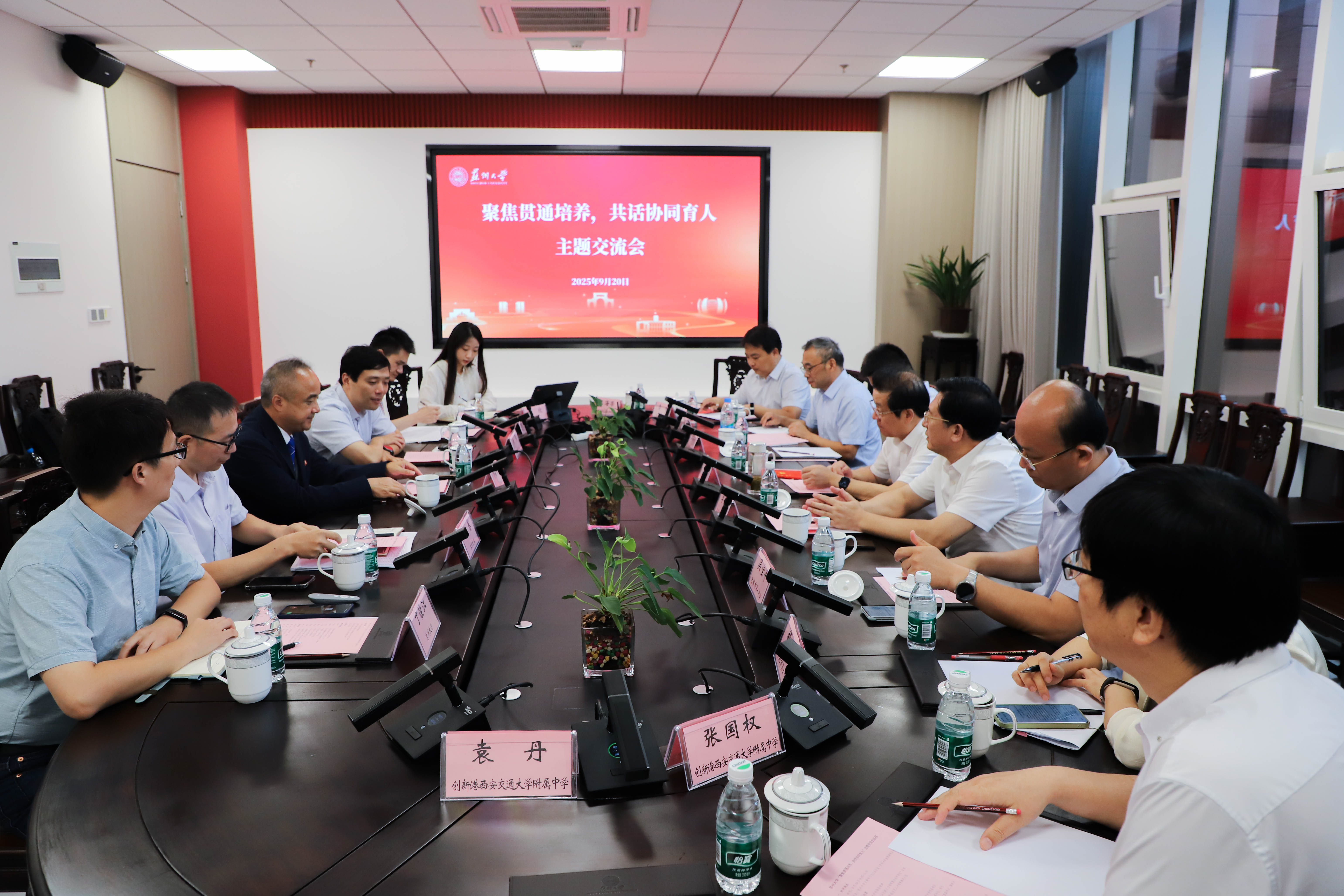 9月20日,开云唯一官网_开云(中国)有限公司举办“聚焦贯通培养,共话协同育人”主题交流会。校党委常委、副校长查佐明,来自江苏省通州高级中学、江苏省运河中学、江苏省赣榆高级中学、无锡市第一中学、江苏省江都中学、合肥市第二中学、河北正定中学、创新港西安交通大学附属中学、江苏省苏州中学校等中学的领导出席会议,招生就业处相关负责人参加会议。会议由招生就业处处长靳葛主持。会前,校长张桥专程看望与会来宾。
