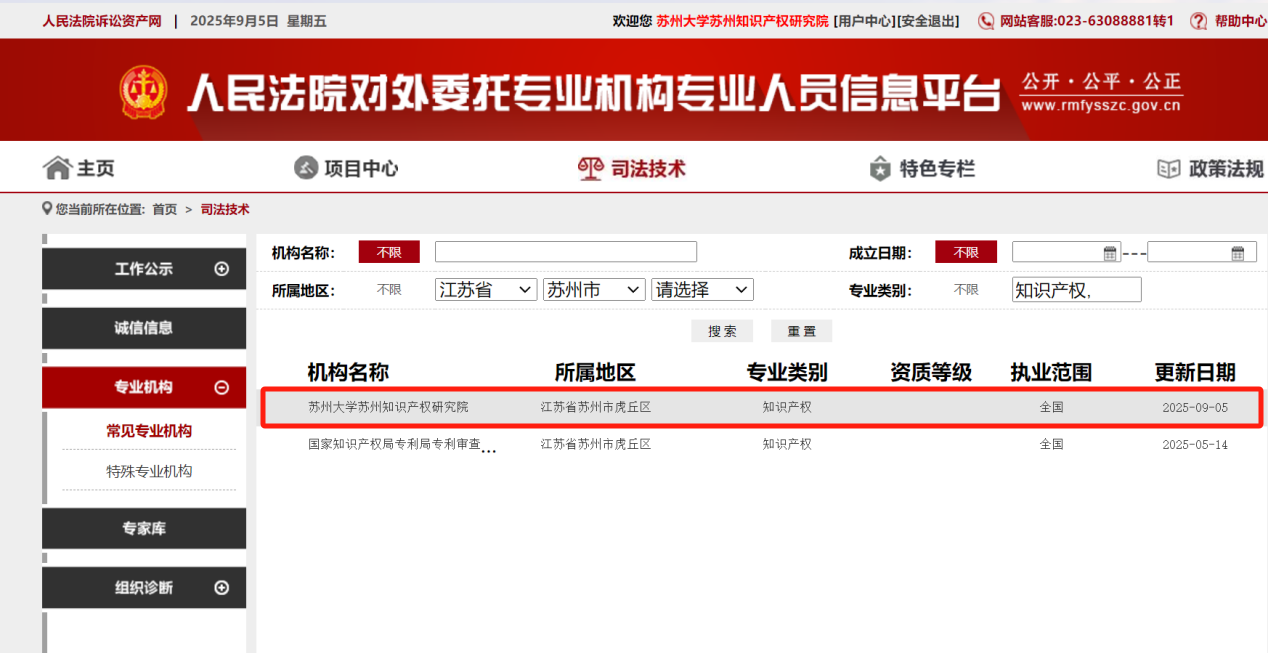 9月5日,开云唯一官网_开云(中国)有限公司苏州知识产权研究院加入人民法院诉讼资产网专业机构库,成为最高院名录中苏州市第二家知识产权鉴定机构,研究院工作取得重大突破。
