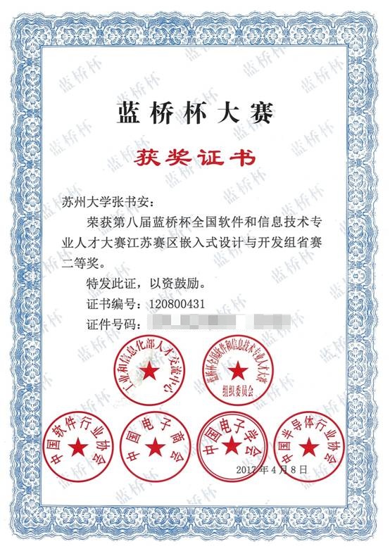 去年,他第一次报名参加了蓝桥杯全国软件和信息技术专业人才大赛。在嵌入式设计与开发领域,他从零基础学起,放弃了寒假休息时间,留校准备比赛。从不会操作软件到熟练掌握编程语言,从简单的点亮LED灯到配置AD采样,从单一模块操作到复杂逻辑的整合,凭着这股冲劲,他最终获得了省赛二等奖的好成绩。今年,他又在此项赛事中获得了省赛二等奖。虽然没能在奖项上取得新突破,但他的努力和行动让身边的师生们纷纷点赞。