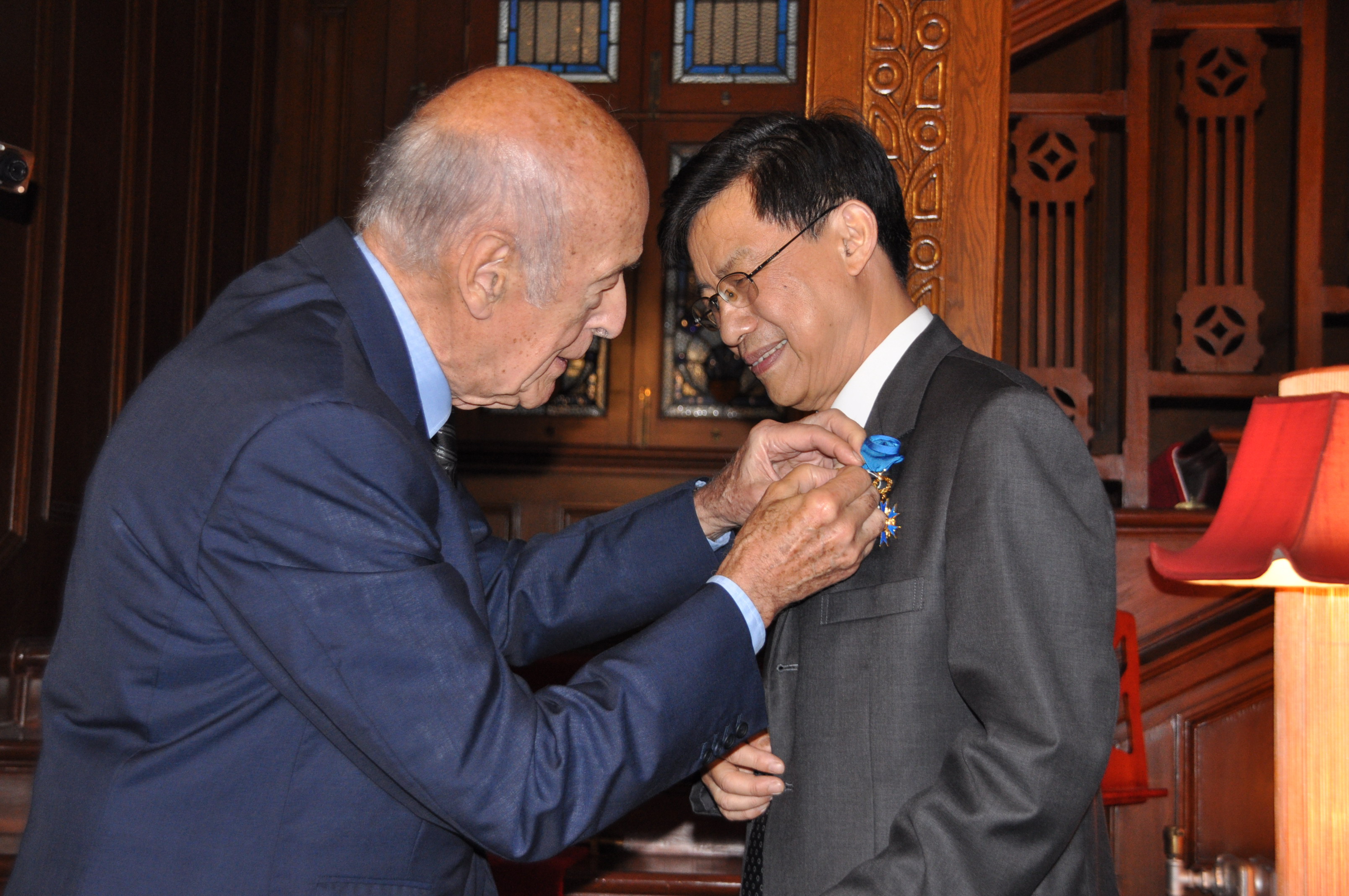 2011年法国前总统斯坦先生向阮长耿院士授予“法兰西国家功绩军官勋章”
