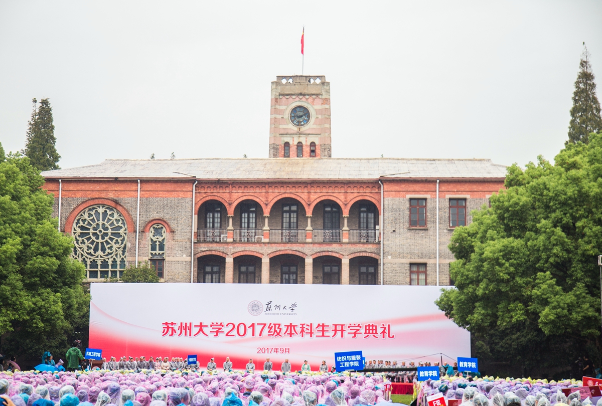 开学典礼正式开幕前,老师和学长学姐们为2017级新生带来了精彩的暖场表演。典礼现场虽下起了秋雨,但难掩师生们的热情和喜悦,欢呼声、掌声在这所百年校园里阵阵回响。