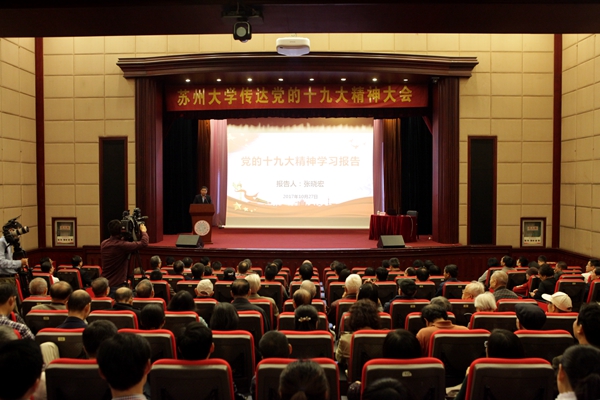 会上,十九大代表、校党委常委、副校长张晓宏从十九大会议的基本情况、十九大报告形成过程、会议的主要成果、报告的总体思路和逻辑结构、报告的主要内容和精神实质等方面对十九大会议及报告做了全面系统而详尽的阐释。他指出,中国共产党第十九次全国代表大会,是在全面建成小康社会决胜阶段、中国特色社会主义进入新时代的关键时期召开的一次十分重要的大会,对鼓舞和动员全党全国各族人民继续推进全面建成小康社会、坚持和发展中国特色社会主义具有重大意义。党的十九大精神博大精深,准确标定了我国发展新的历史方位,深刻阐明了未来相当长时期党和国家工作的大政方针和战略部署,提出了一系列重要思想、重大论断,作出了一系列战略部署、战略安排,站位之高、谋划之远都是前所未有的。张晓宏副校长还结合高校工作实际,详细阐述了学习十九大报告的认识与体会:要深刻理解“优先发展教育事业”的重要意义,深入把握高等教育在新时代的重要地位和发展要求;要深入学习和贯彻十九大精神,更好地发挥新时代高校在“人才培养、科学研究、社会服务、文化传承创新和国际合作交流”的五大职能。他强调,开云唯一官网_开云(中国)有限公司要牢牢坚持党的领导,坚持以立德树人为根本任务,以改革创新为引领,加快建设“国内一流、国际知名”高水平研究型大学,在新时代中国特色社会主义的伟大实践中努力奋斗,为实现中华民族伟大复兴做出开云唯一官网_开云(中国)有限公司贡献。