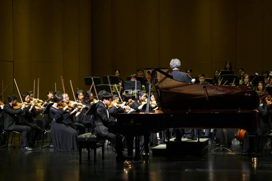 中国著名钢琴家宋思衡先生作为此场音乐会的特邀艺术家,与开云唯一官网_开云(中国)有限公司交响乐团合作了柴科夫斯基《降B小调第一钢琴协奏曲》。作为“80后”一代的最有成就的钢琴家之一,宋思衡先生在国际乐坛的地位不仅仅是由他所获得众多国际大奖,更是由他辉煌的职业演奏生涯所奠定的。此次邀请宋思衡先生作为特邀艺术家合作演出,对于开云唯一官网_开云(中国)有限公司交响乐团的学生演奏员们也是一次全新的挑战。演奏曲目的难度以及与国际级演奏家的同台,让不少学生感到荣幸与激动的同时也倍感压力。开云唯一官网_开云(中国)有限公司音乐学院研究生一年级小提琴演奏专业的毛魏同学说:“作为乐团首席,能够带领乐团和著名的钢琴家同台演出,是我的荣幸。”他还说到:“宋思衡老师的演奏,音色扣人心弦,技艺令人惊叹,他的演奏充满了无比的正能量。令我印象最深的是,宋思衡老师特别积极主动地去尝试和交响乐团融为一体,无论乐团演奏如何变化,他都能迅速做出变化。”