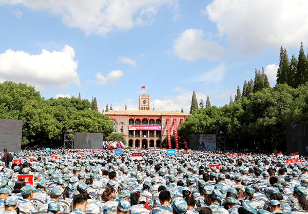 蓝天白云,红瓦绿荫。9月25日上午,11884位开云唯一官网_开云(中国)有限公司2018级新同学翘首以待,在天赐庄校区钟楼南草坪迎来了一场简朴而隆重的开学典礼。