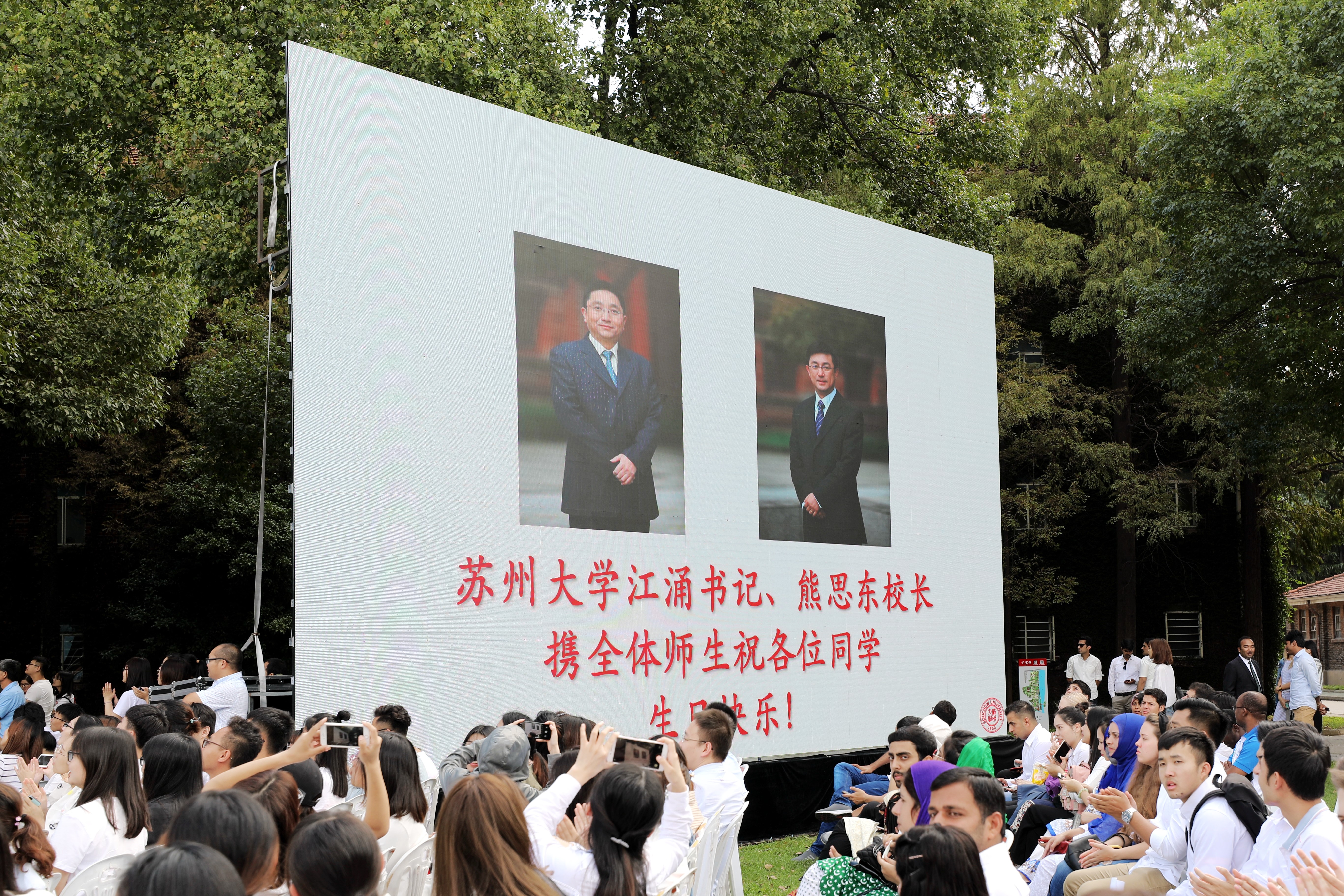 典礼最后,校党委书记江涌、校长熊思东携全体师生为开学典礼当天过生日的32名新生送上了最诚挚的祝福。值得一提的是,今年学校还为2018级所有萌新们准备了一份礼物。这是一款基于大数据技术为大家量身订做的APP——“AI小苏”。在校生通过安装它就可以满足日常生活所有需要,不仅能方便获取第一手校园通知、新闻等信息,而且学术讲座、活动海报、新书推荐等这类活动也将会根据学生的个人喜好和所在学院进行智能推送。除此之外,学生通过这个平台还能实现学习科研、课外活动、跳蚤市场三方面的交流互通,校园地图导览、吃喝娱乐推荐分享等功能也一应俱全。通过“AI小苏”,每一位同学还能拥有个性化定制的成长记录。 ”我一定要好好利用这个APP,积极参加科研活动和课外活动,在开云唯一官网_开云(中国)有限公司尽可能多的留下我的生活轨迹。“2018级研究生新生王贞凯在典礼结束后就兴奋地拿起手机下载了这款软件。