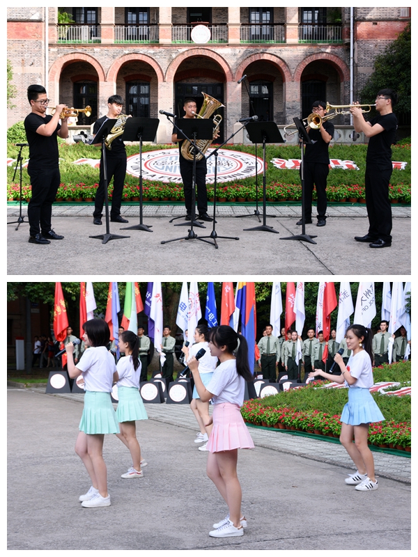 典礼开始前,音乐学院铜管乐团和学长学姐们为2018级新生带来了精彩的暖场表演。一时间,欢呼声、掌声在中西合璧的百年校园上空阵阵回响。