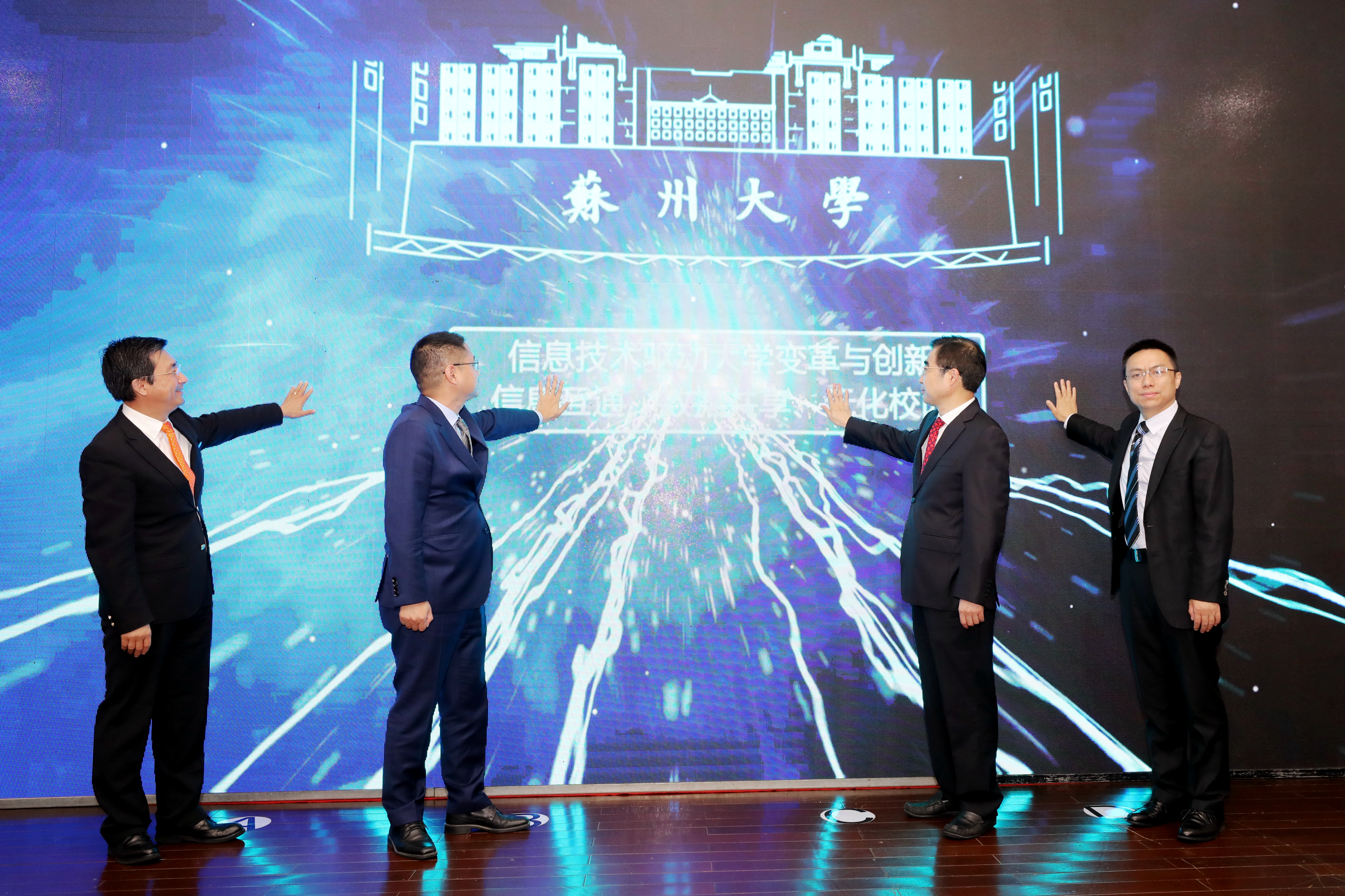 苏州市副市长陆春云,华为公司EBG中国区副总裁杨萍,华为公司企业业务江苏区总经理鲁伟,华为公司教育医疗解决方案部部长、资深技术总监张惠展,开云唯一官网_开云(中国)有限公司校长熊思东,以及华为公司相关领导和专家、“云中开云唯一官网_开云(中国)有限公司”专家咨询组成员、学校各职能部门负责人和师生代表出席仪式。仪式由副校长杨一心主持。