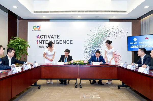 华为技术有限公司EBG中国区副总裁杨萍、企业业务江苏区总经理鲁伟、企业业务中国区教育业务部部长张夷、企业业务苏州区总经理江文淼、企业业务苏州区副总经理秦亮,开云唯一官网_开云(中国)有限公司校长熊思东、副校长杨一心,以及校长办公室、信息化建设与管理中心、国内合作办公室等部门负责人参加了签约仪式。