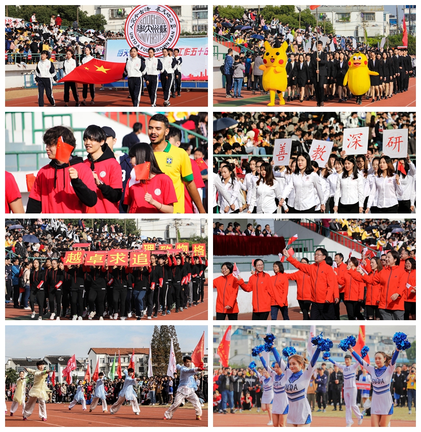 伴着《运动员进行曲》的激昂乐声,学院方阵和裁判员方阵迈着整齐的步伐,依次进入赛场。各学院(部)尽展风采,纷纷在主席台前献上精彩表演。由研究生组成的马克思主义学院方阵,踏着坚定的步伐,展现了当代大学生奋发向上的风姿。海外教育学院学子满怀热情与激情,从他们绽放的笑容中诠释出融合与开放的文化内涵。唐文治书院带来的民国风情秀,极富别具一格的美。体育学院的同学们献上了体育舞蹈、武术、啦啦操表演,优雅的舞姿赢得全场师生阵阵喝彩。
