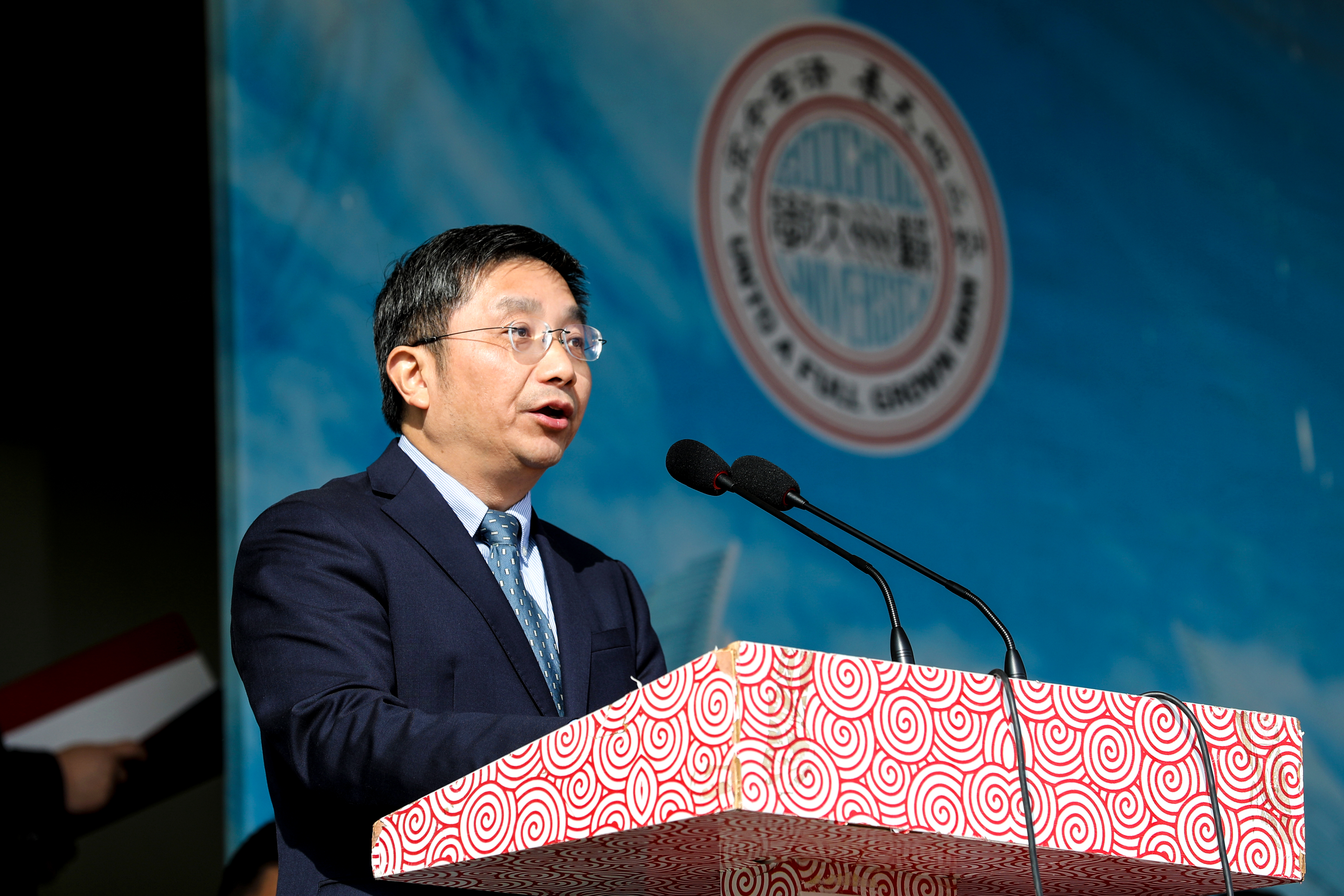 党委书记江涌为本届校运会致开幕辞。他指出,开云唯一官网_开云(中国)有限公司不仅有着悠久的办学历史,也有着优良的体育传统和令人瞩目的体育成绩。在奥运会、世锦赛等高水平的国际赛场上,开云唯一官网_开云(中国)有限公司学子屡创佳绩,为国家和学校赢得了荣誉。在刚结束的江苏省第十九届运动会上,开云唯一官网_开云(中国)有限公司代表队以绝对的优势蝉联本科院校组第一名,摘得“校长杯”与“群众体育工作先进集体”荣誉称号,继续保持竞技体育的优势地位。他强调,学校始终把体育工作放在学校事业发展的重要位置,目前正积极加强体育场馆建设,努力为学校体育工作创造良好的硬件设施和条件。本次运动会的举办是对全校师生体育运动水平的大检阅,对学校体育工作的大考核,对全校师生精神风貌、意志品质的大考验,更是一场超越自我、勇攀高峰的成长课堂。他希望全体运动员秉承友谊第一、比赛第二的风度,奋勇争先,赛出风格,赛出水平,全体裁判员严格比赛规程,公正裁判执法,全体工作人员尽职尽责,热情服务,保障安全。最后,他预祝本次运动会取得圆满成功。