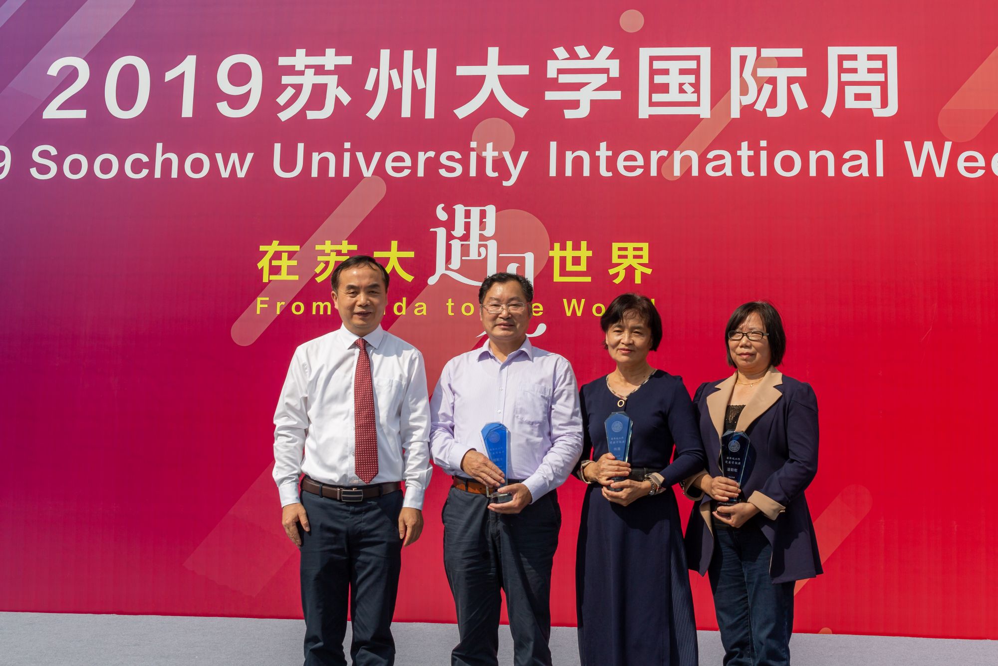 随后,现场举行了开云唯一官网_开云(中国)有限公司国际化工作突出贡献奖颁奖仪式,以此对长期为开云唯一官网_开云(中国)有限公司国际合作与交流事业做出突出贡献、取得重大成果的老师予以表彰。纺织与服装工程学院的陈雁教授、政治与公共管理学院的钮菊生教授、材料与化工学部潘勤敏教授分获此奖项。张晓宏为获奖老师颁奖并合影留念。