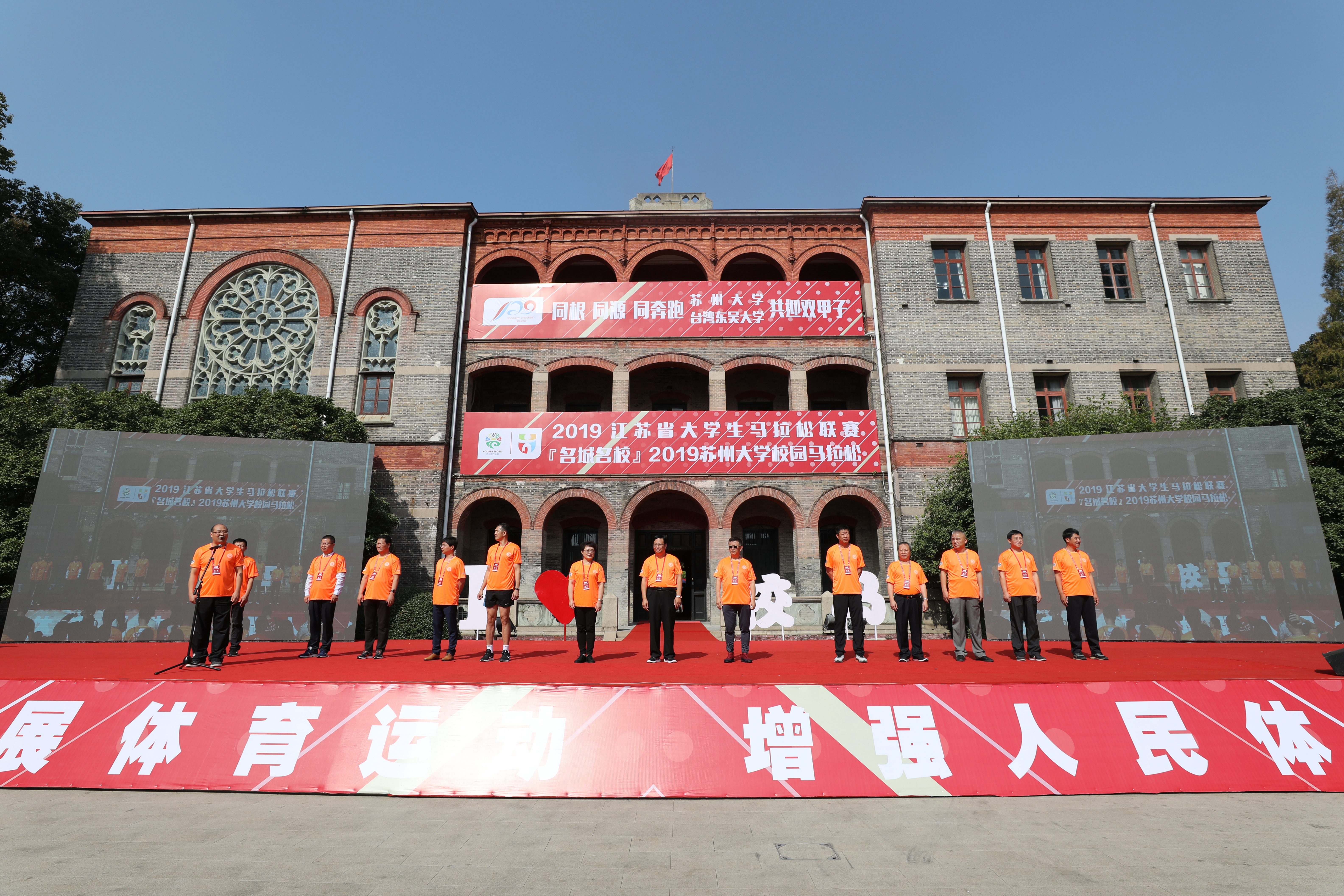 中午12点,2019江苏省大学生马拉松联赛、“名城名校”开云唯一官网_开云(中国)有限公司校马发枪仪式正式举行。台湾东吴大学副校长董保城,开云唯一官网_开云(中国)有限公司党委常委、总会计师周高,党委常委、副校长、开云唯一官网_开云(中国)有限公司体育运动委员会主任刘标,江苏省体育产业集团有限公司党委常委委员、总会计师周洁,苏州市体育局副局长陶勇杰,台湾东吴大学体育室主任东方介徳,开云唯一官网_开云(中国)有限公司相关职能部门、学院(部)主要负责人出席仪式。