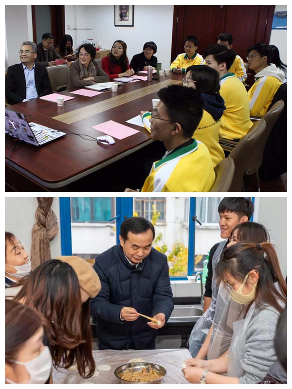 在紫卿书院学生公寓楼,2019级少数民族预科班全体同学和老师们一起包饺子过冬至,不仅加深了自己对冬至的了解和认识,深深地体会到了浓浓的师生情。海外教育学院来自五湖四海的留学生们演绎他们心中的中国故事,展现中华传统文化的独特魅力。不同国家的文明和风俗在这里交相融汇,将舞台打造得亮丽缤纷。