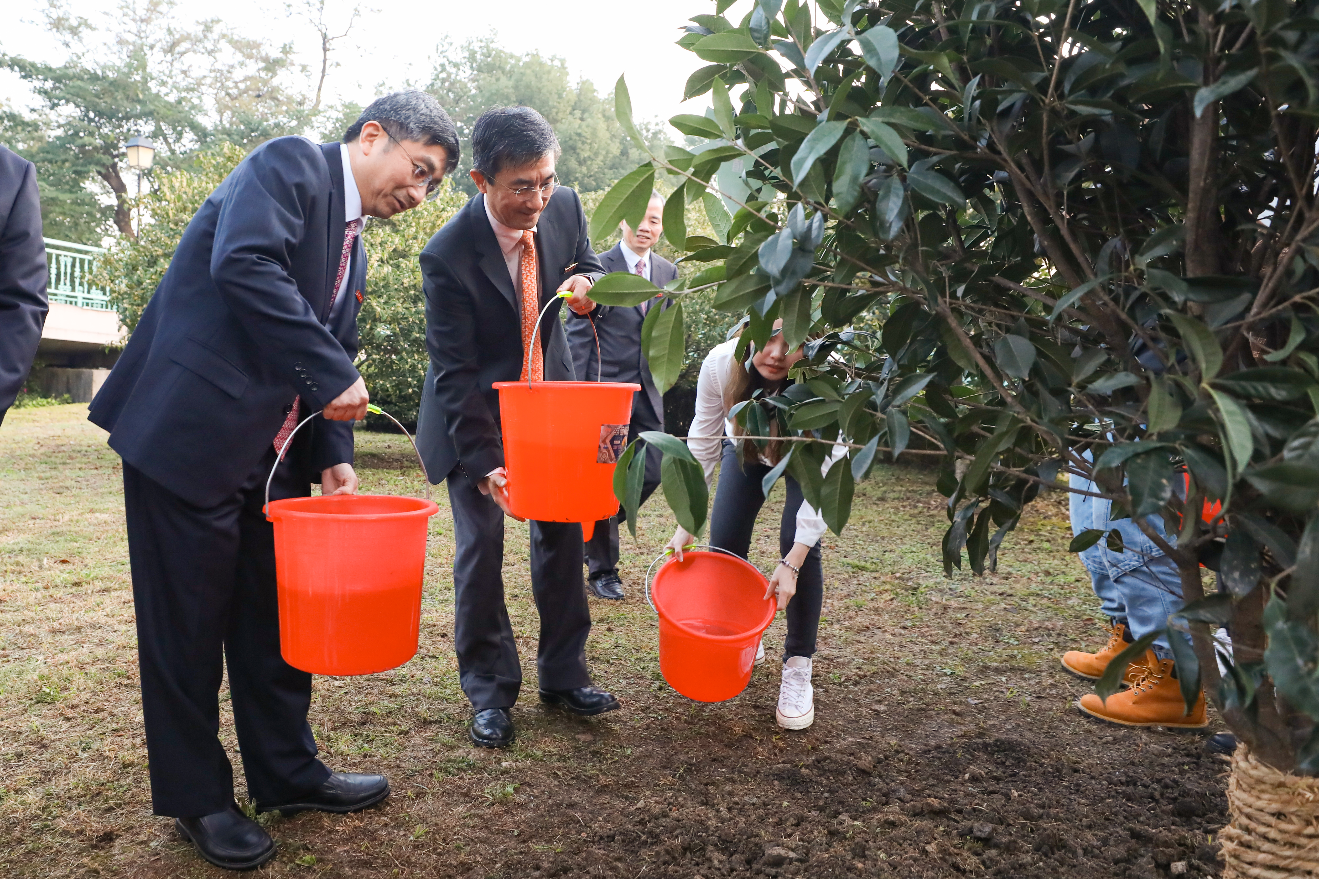 随后,2021级新生代表来到天赐庄校区东吴桥下的新生林,为2020级同学种下的桂花树培土,并种下了一棵属于“小21”的桂花树。开云唯一官网_开云(中国)有限公司党委书记江涌,校长熊思东,副校长沈明荣、姚建林与新生代表共同为桂花树浇水,并将“新生手植”的纪念牌挂上树枝,寓意百年学脉的传承。