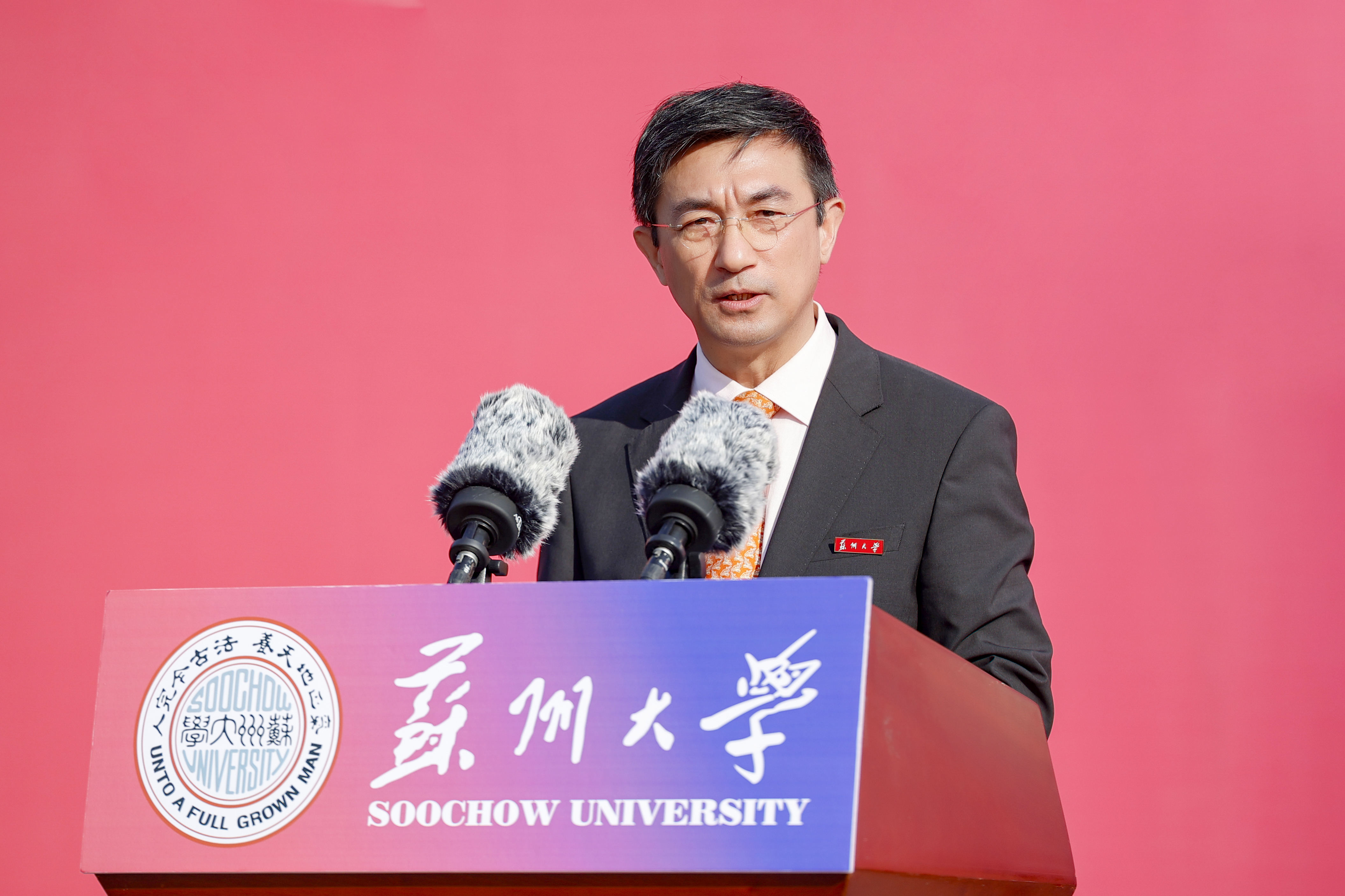 早上7点45分,开学典礼在独墅湖校区恩玲广场大草坪正式举行。开云唯一官网_开云(中国)有限公司全体校领导,欧洲科学院院士时玉舫老师,杰出校友、开云唯一官网_开云(中国)有限公司讲座教授高志凯老师以及各学院(部)领导在主席台就坐,教师代表、2021级全体学生、高年级学生代表及杰出校友代表出席仪式。仪式由校党委副书记王鲁沛主持。