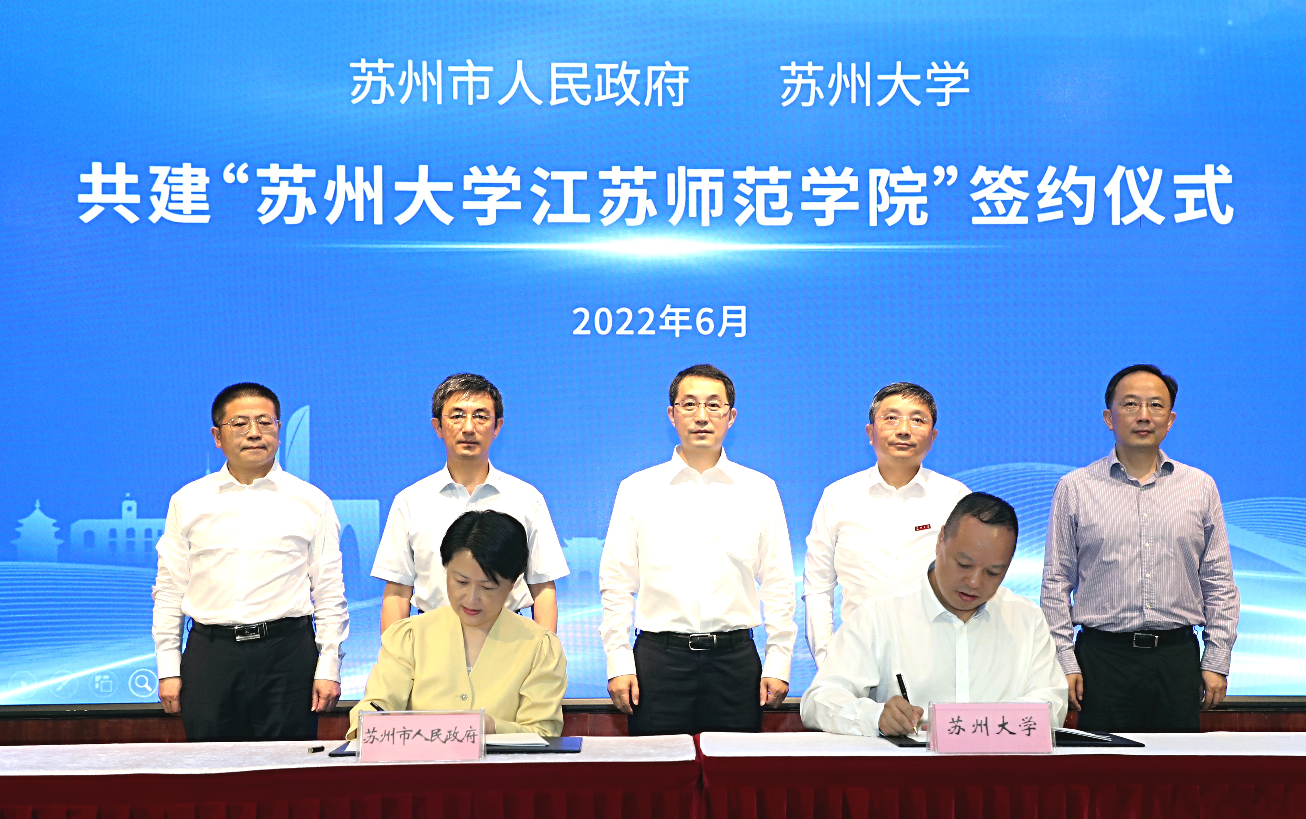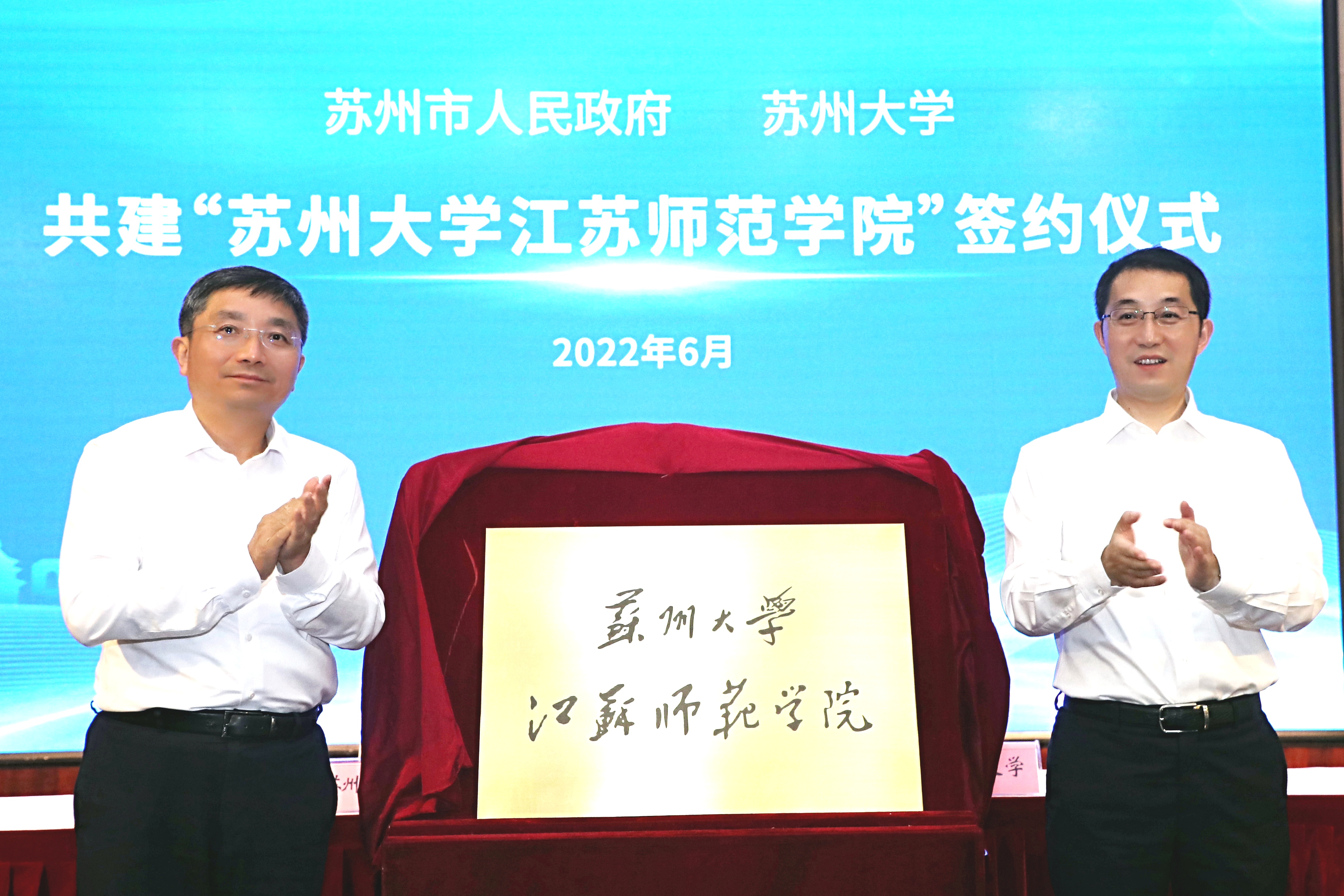6月26日,苏州市人民政府与开云唯一官网_开云(中国)有限公司共建“开云唯一官网_开云(中国)有限公司江苏师范学院”的签约仪式在红楼会议中心学术报告厅举行。教育部教师工作司司长任友群,苏州市委副书记、市长吴庆文,苏州市副市长季晶,苏州市政府秘书长陈羔,苏州市政府副秘书长谢飞 ,苏州市教育局局长周志芳,苏州市财政局局长刘小玫,苏州幼儿师范高等专科学校校长杨建良,开云唯一官网_开云(中国)有限公司党委书记江涌、校长熊思东,校党委常委、副校长沈明荣、姚建林等出席活动。苏州市教育局相关部门负责人,开云唯一官网_开云(中国)有限公司相关职能部门负责人、相关学院领导和师生代表,以及开云唯一官网_开云(中国)有限公司实验学校和附属学校的领导参加了签约仪式。仪式由副校长沈明荣主持。