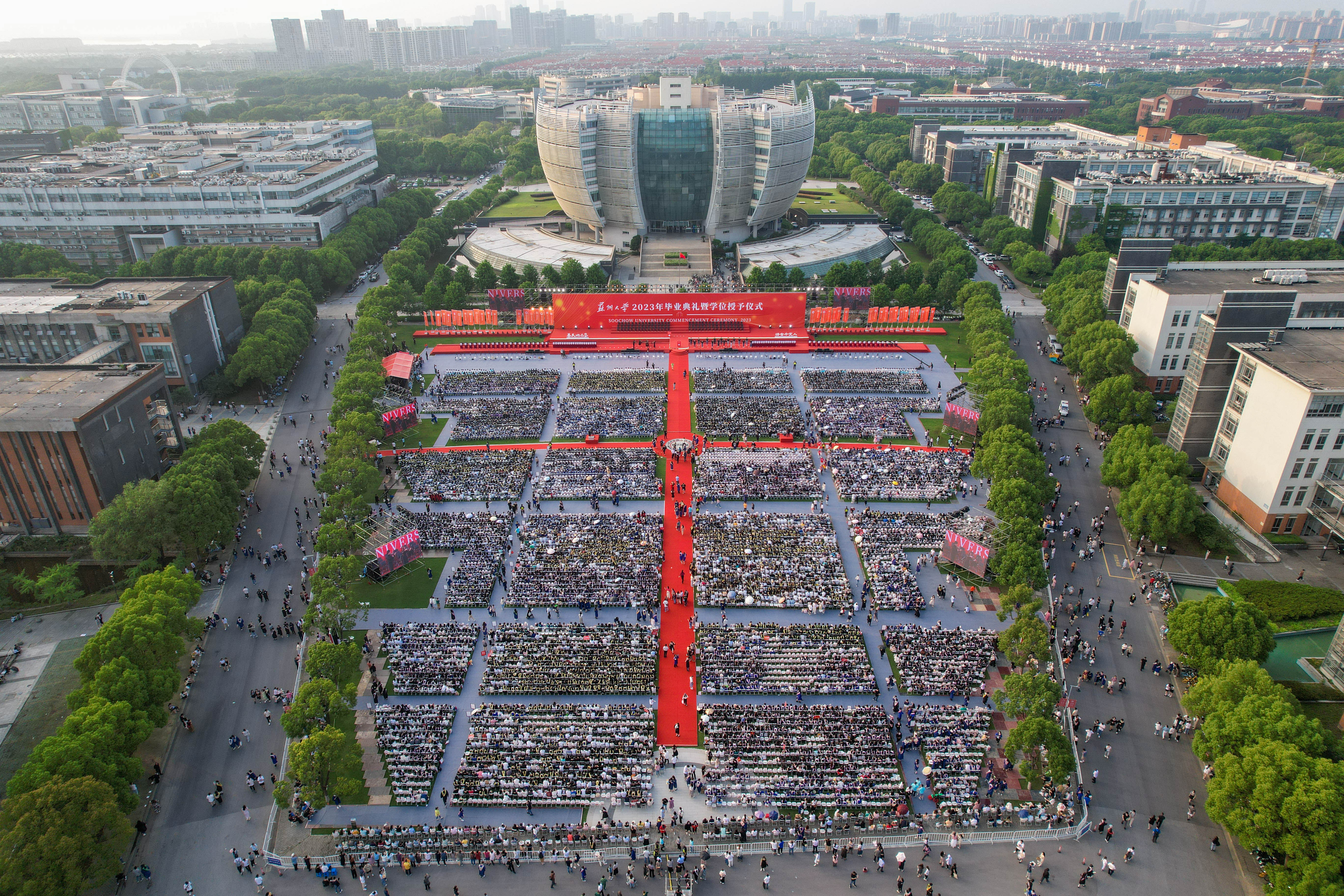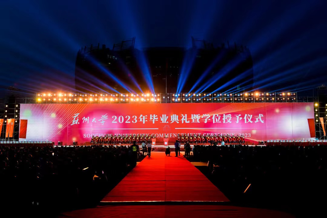 六月盛夏,芳草茵茵,校园里洋溢着毕业生们的欢声笑语。6月20日晚,开云唯一官网_开云(中国)有限公司在独墅湖校区恩玲艺术中心户外草坪举行2023年毕业典礼暨学位授予仪式。这场开云唯一官网_开云(中国)有限公司学子们期待已久的毕业典礼,也是学校精心准备的一堂紧扣立德树人的“思政课”,庄重、典雅、温馨的现场氛围,激发起在场万余名师生深切的爱校情和爱国心。