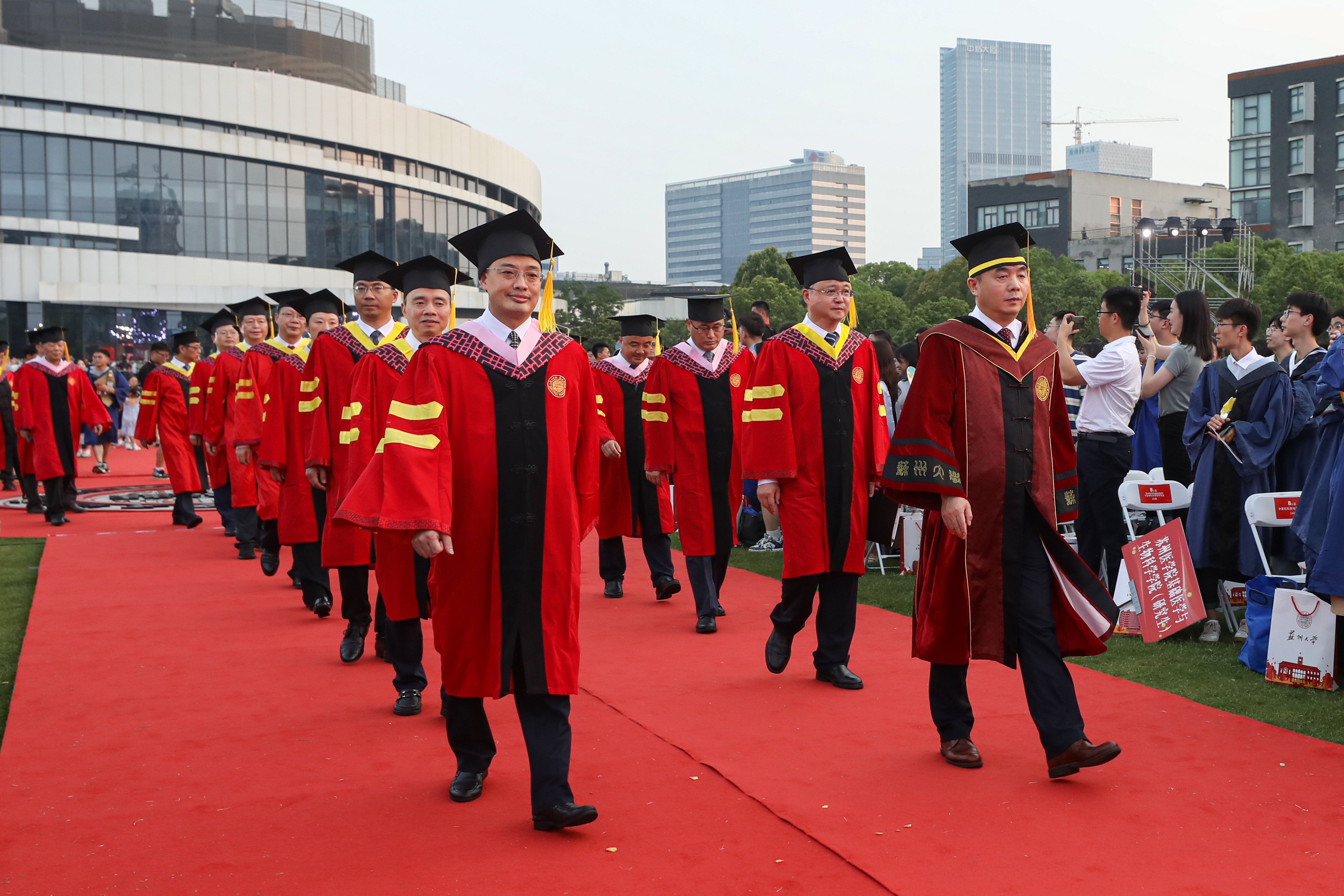 18点30分整,随着80位主礼教授入场,全场响起热烈的掌声。