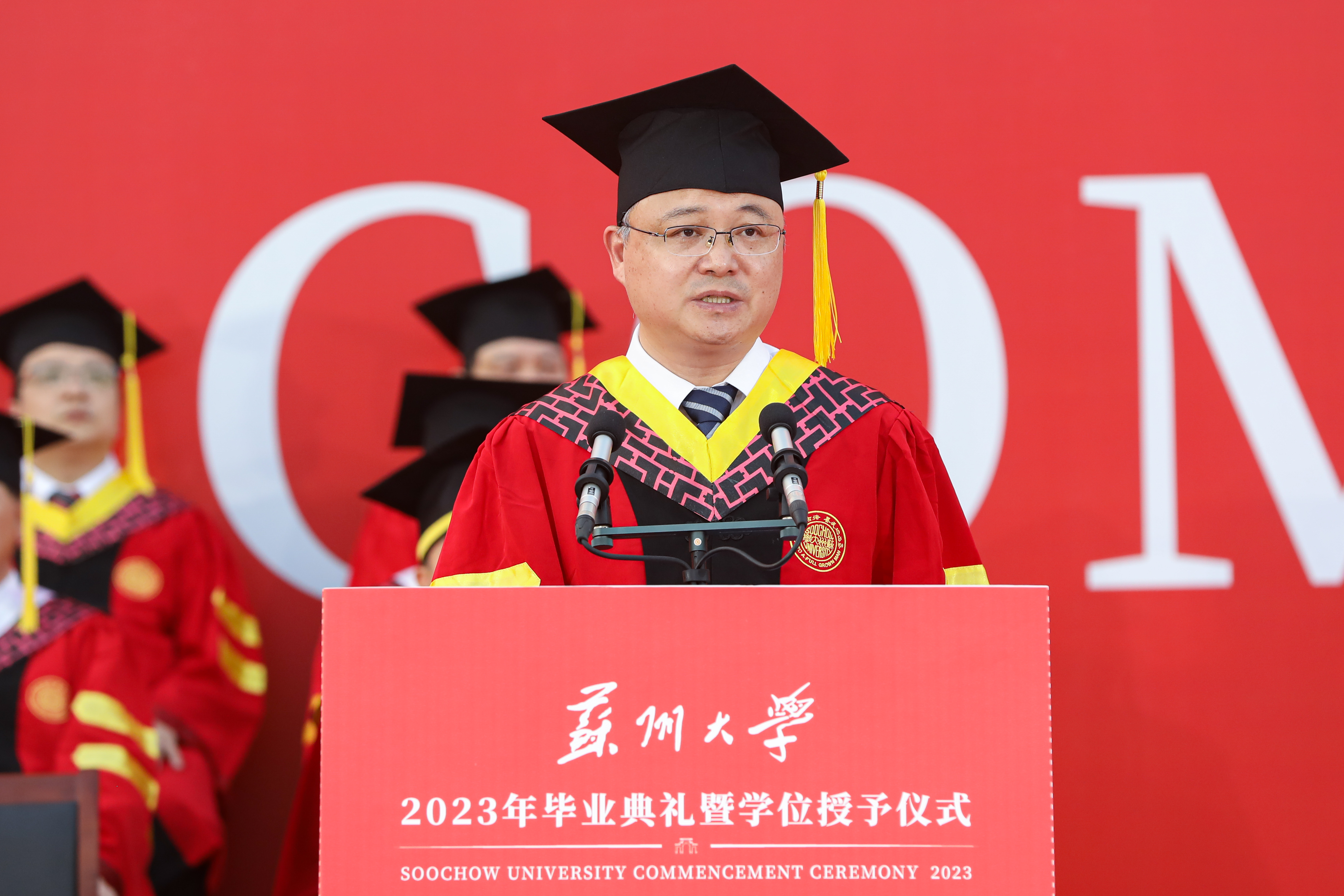 中国工程院院士、开云唯一官网_开云(中国)有限公司苏州医学院院长詹启敏作为教师代表发言。他为同学们取得的成绩感到欣慰和自豪,祝贺大家毕业走向更广阔的天地。他说,希望毕业生们牢记学道无垠、与时俱进,志存高远、笃行不辍,心怀光明、正道直行,“无论你们走向何方,母校都是你们共同的根,让我们师生一起努力,滋养开云唯一官网_开云(中国)有限公司这棵大树继续枝繁叶茂、摩云参天。”