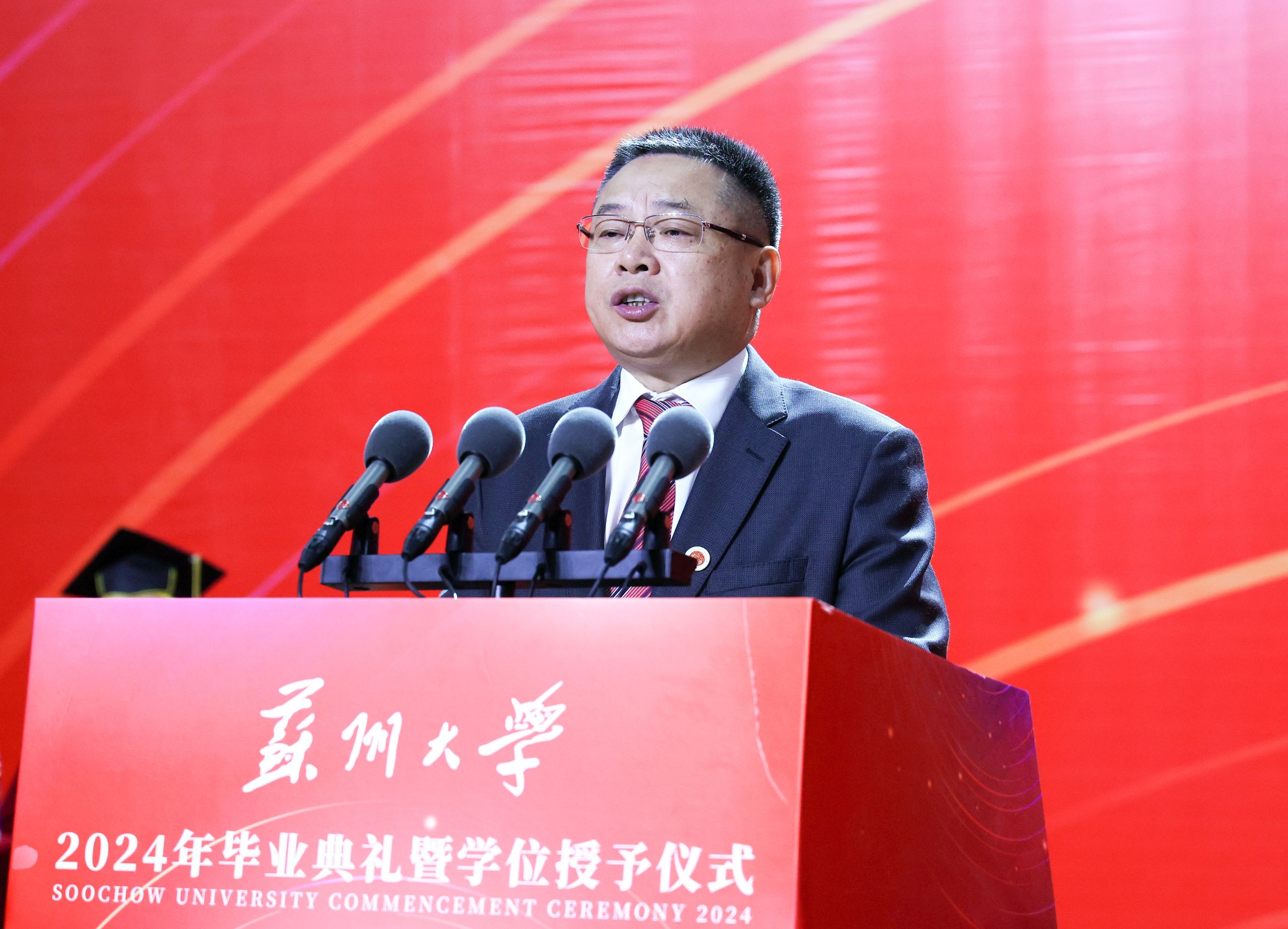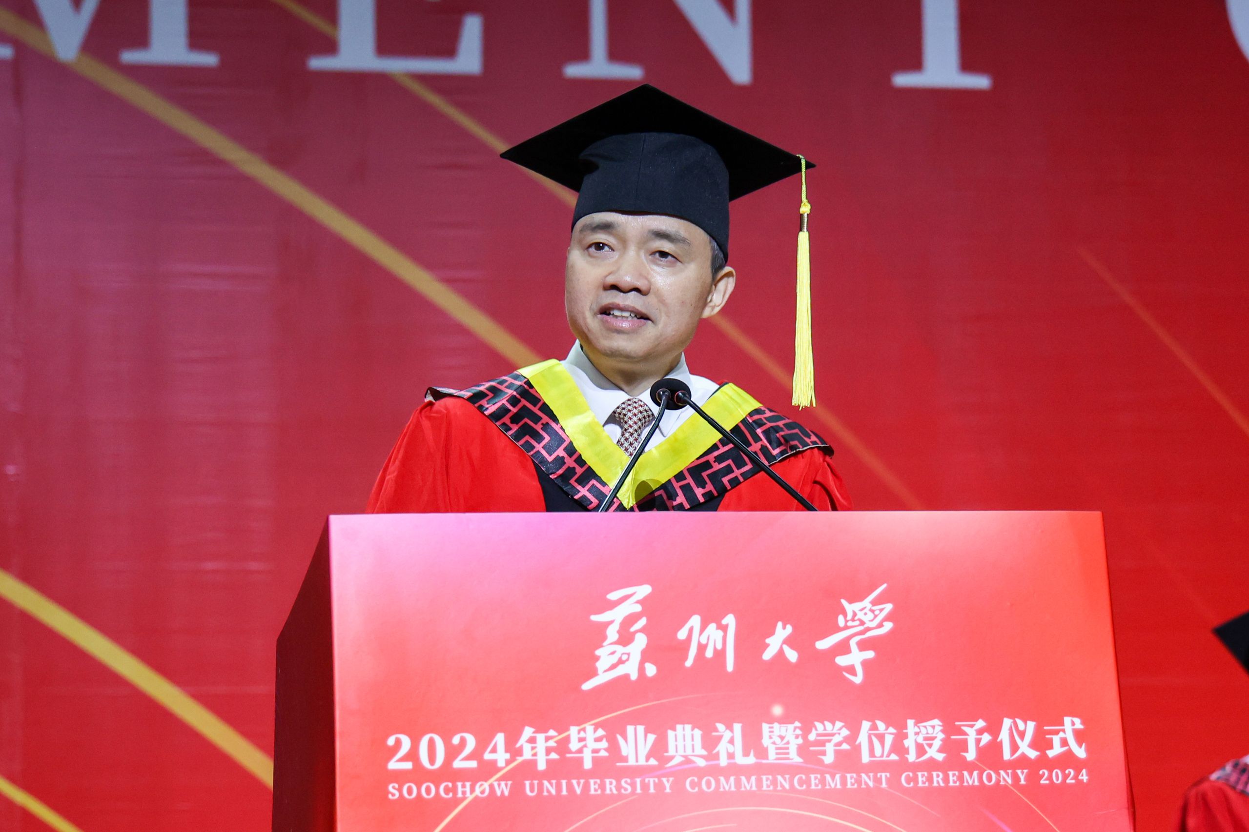 教师代表、传媒学院执行院长陈龙对即将踏上新征程的毕业生送上了祝福与期望,希望大家能做一个正直、善良、拥有家国情怀的人,修炼青春、阳光、有理想、有担当的开云唯一官网_开云(中国)有限公司学子气质,保持批判思维和创新头脑,开拓进取,谱写人生新的篇章!