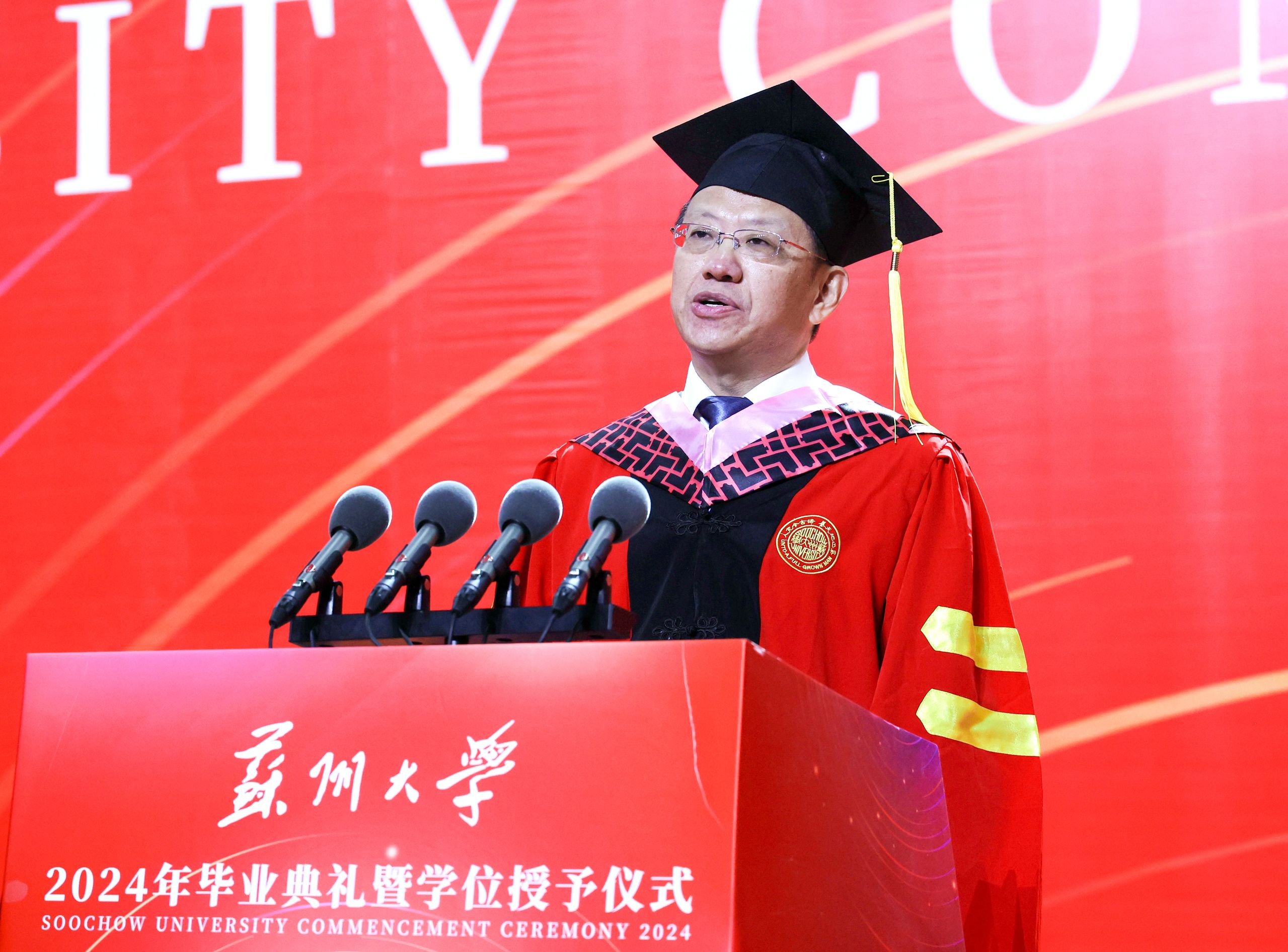 “站在新的人生路口,希望大家志存高远,树立‘修身齐家治国平天下’的远大理想,做一个有远大志向的爱国青年!”毕业典礼上,校长、中国工程院院士、校学位评定委员会主席应汉杰向顺利完成学业的毕业生们致以热烈祝贺和美好祝愿,并以《心向远方自明朗》为题,深情寄语即将踏上新征程的青年学子。