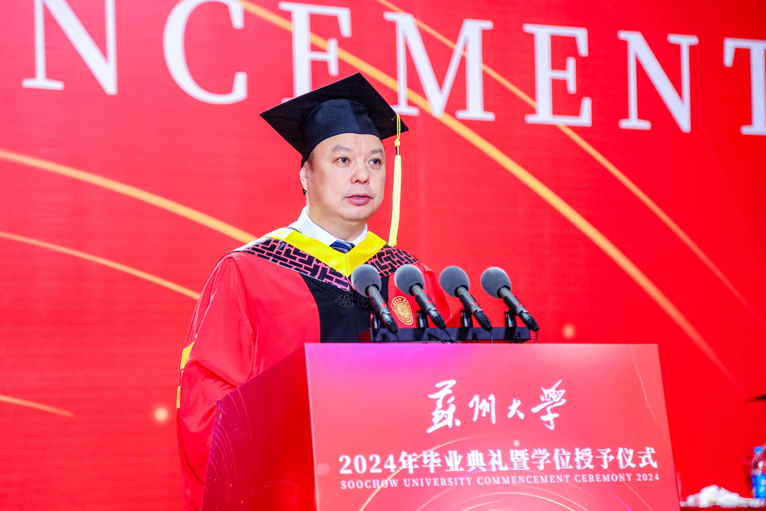 忆往昔,你踏进东吴门的那刻,稚嫩青涩,憧憬着未来与理想;展今朝,站在人生又一个新的节点,你挥手作别过往,铺展已然丰满的羽翼。“原来总感觉毕业遥遥无期,转眼间我们即将各奔东西。”2020级纳米科学技术学院的徐家铭在典礼后感慨时间飞逝,“当主礼教授将授予学位的卷轴交到我手中时,我愈发觉得正接过新时代的接力棒,要铭记母校对我的教诲,跑好青春接力赛!”当体育馆的灯光照耀全场,歌声响彻整个会场,每一位毕业生的脸上都闪耀着点点光芒。2022级文学院硕士研究生陈怡身处人群,内心澎湃,“感谢母校给我们的毕业盛宴,我会将校训永远留存心中。祝愿每一位毕业生毕业快乐,在今后的日子里九万里风鹏正举!”