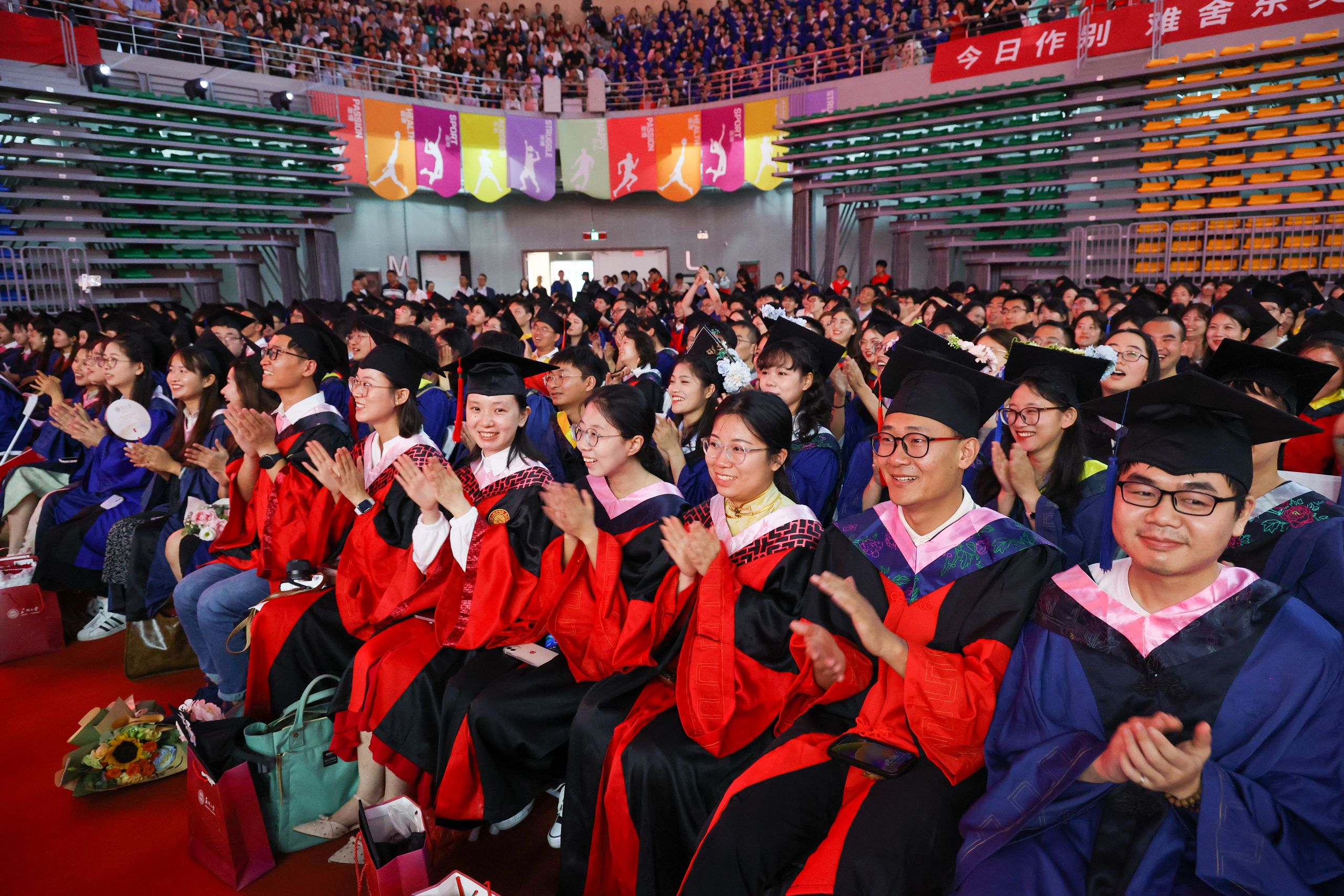 全体校领导、各学位评定分委员会成员、研究生导师、职能部门负责人,各学院(部)负责人、教师、辅导员、2024届毕业生和部分2020届毕业生,在校生代表及家长代表出席毕业典礼。学校的食堂师傅、宿管阿姨、保安大叔、快递小哥代表也应邀来到了现场,一起见证毕业生们重要而幸福的时刻。典礼由校党委副书记、副校长沈明荣主持。