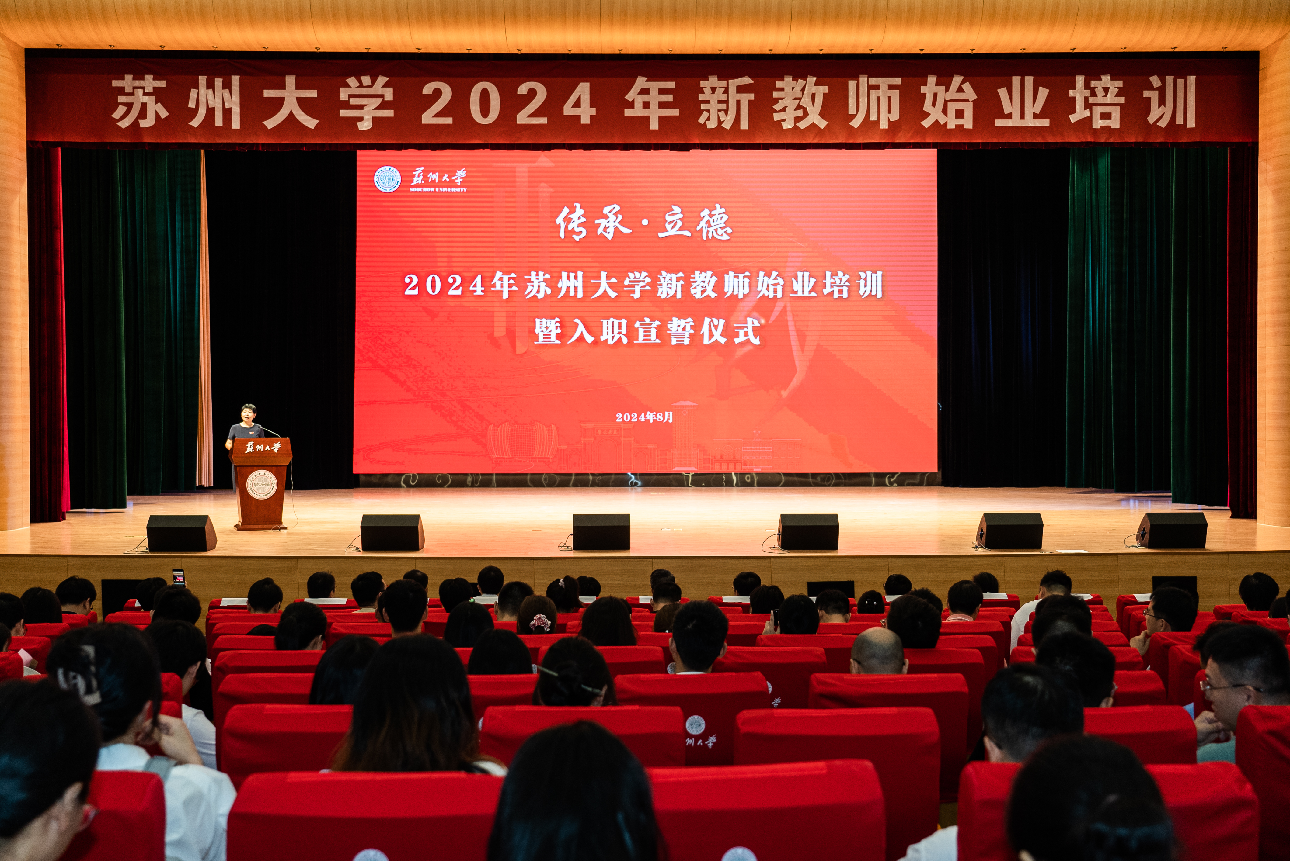 市人大常委会党组成员、一级巡视员周旭东系统阐述了党的十八大以来习近平总书记关于科技创新工作的系列重要论述及其思想脉络,分析了科技创新面临的形势和挑战,介绍了苏州重大科研载体建设的情况和科技创新的经验体会,鼓励青年教师树牢科研报国理想。国家级领军人才、校学术委员会主任王尧以“观乎人文,以化成天下”为题,从人文视角切入,探讨了人文素养、家国情怀、世界眼光、经师与人师、学术理想、学术伦理等问题,要求广大新教师自觉遵守学术规范,共同涵养优良学风。