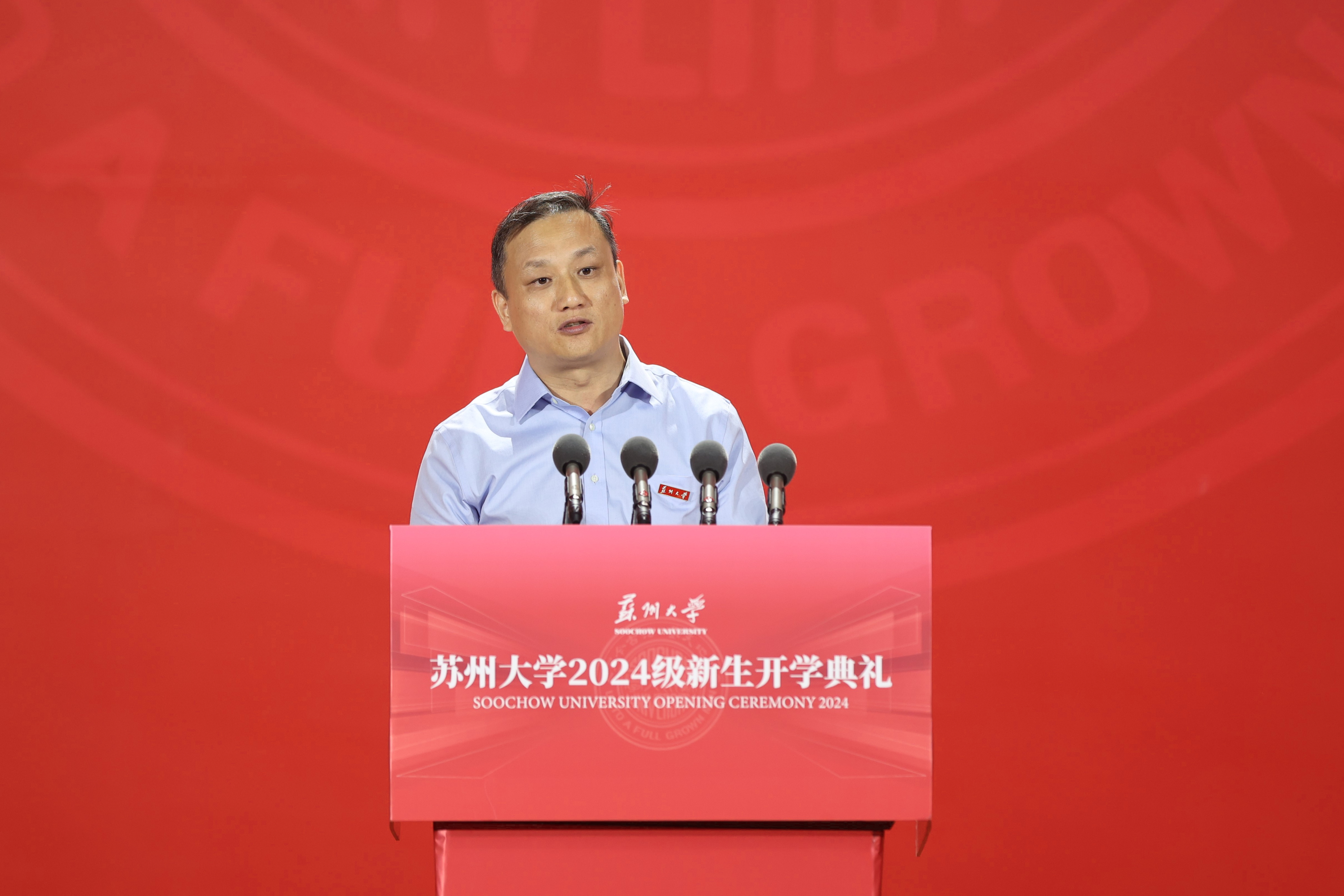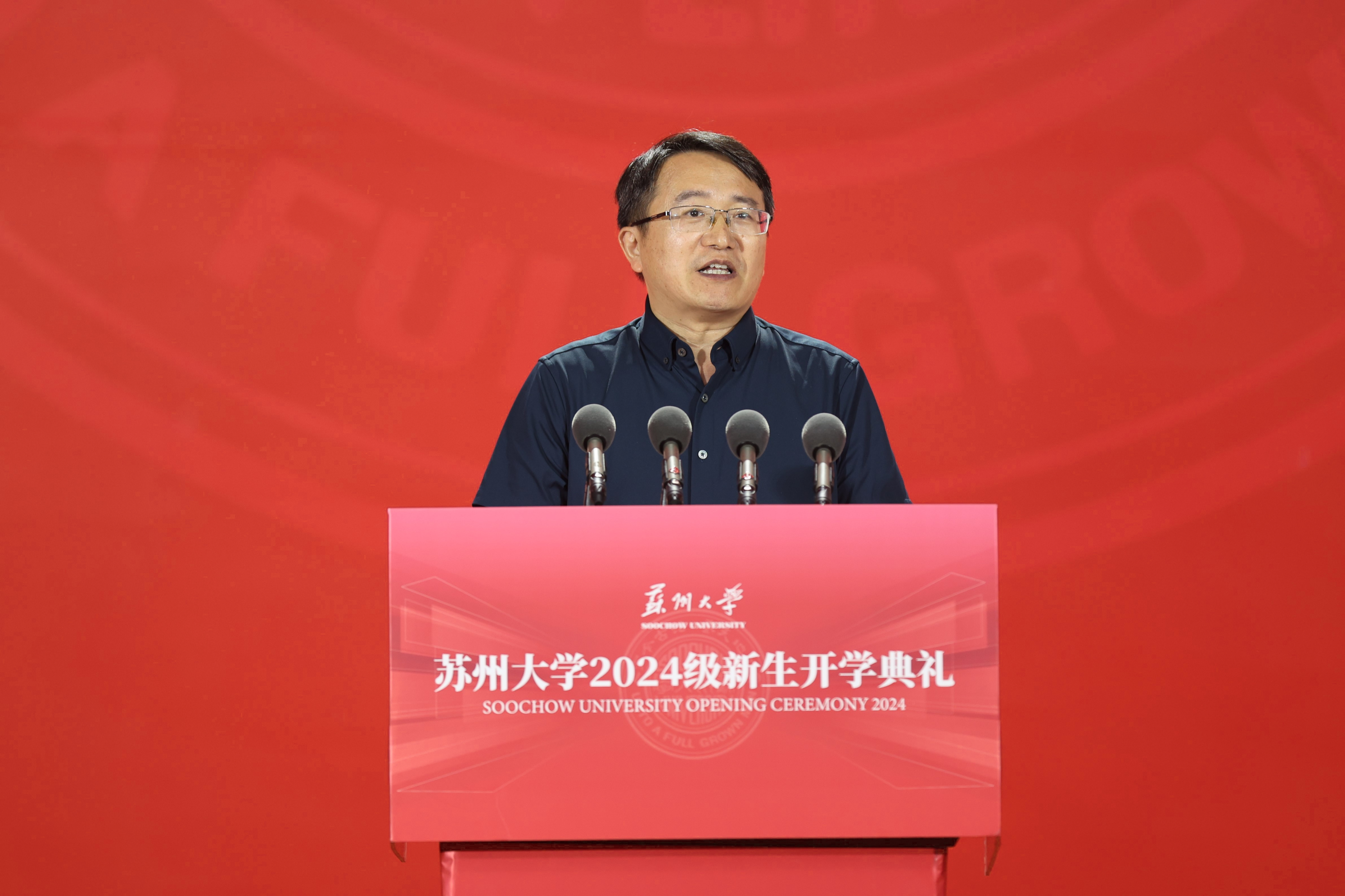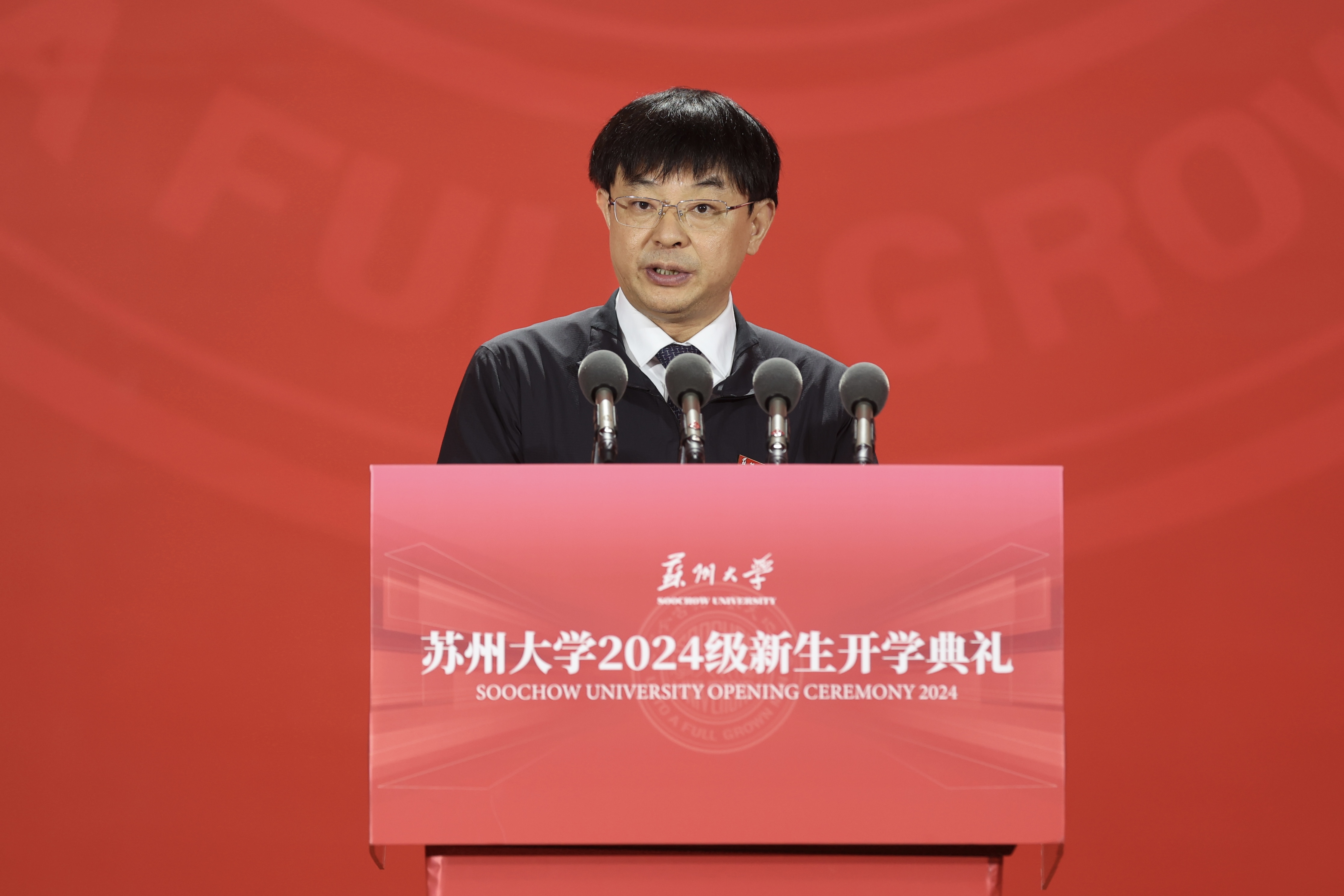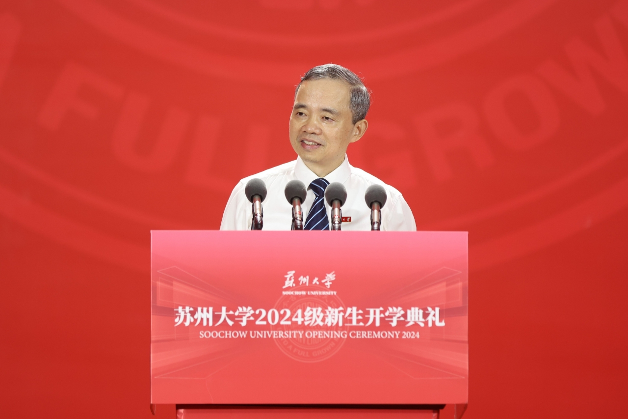 江苏省苏州中学校校长周祖华作为高中校长代表,向新同学表达了祝贺。他深感荣幸能够代表高中校长们,为即将踏上新征程的学生们送上祝福,并寄语新生们通过全面的自我提升,培养广阔的视野和胸怀,同时要坚定理想信念,胸怀“国之大者”,争取大作为,奋力书写属于自己的、也属于民族和国家的辉煌篇章。