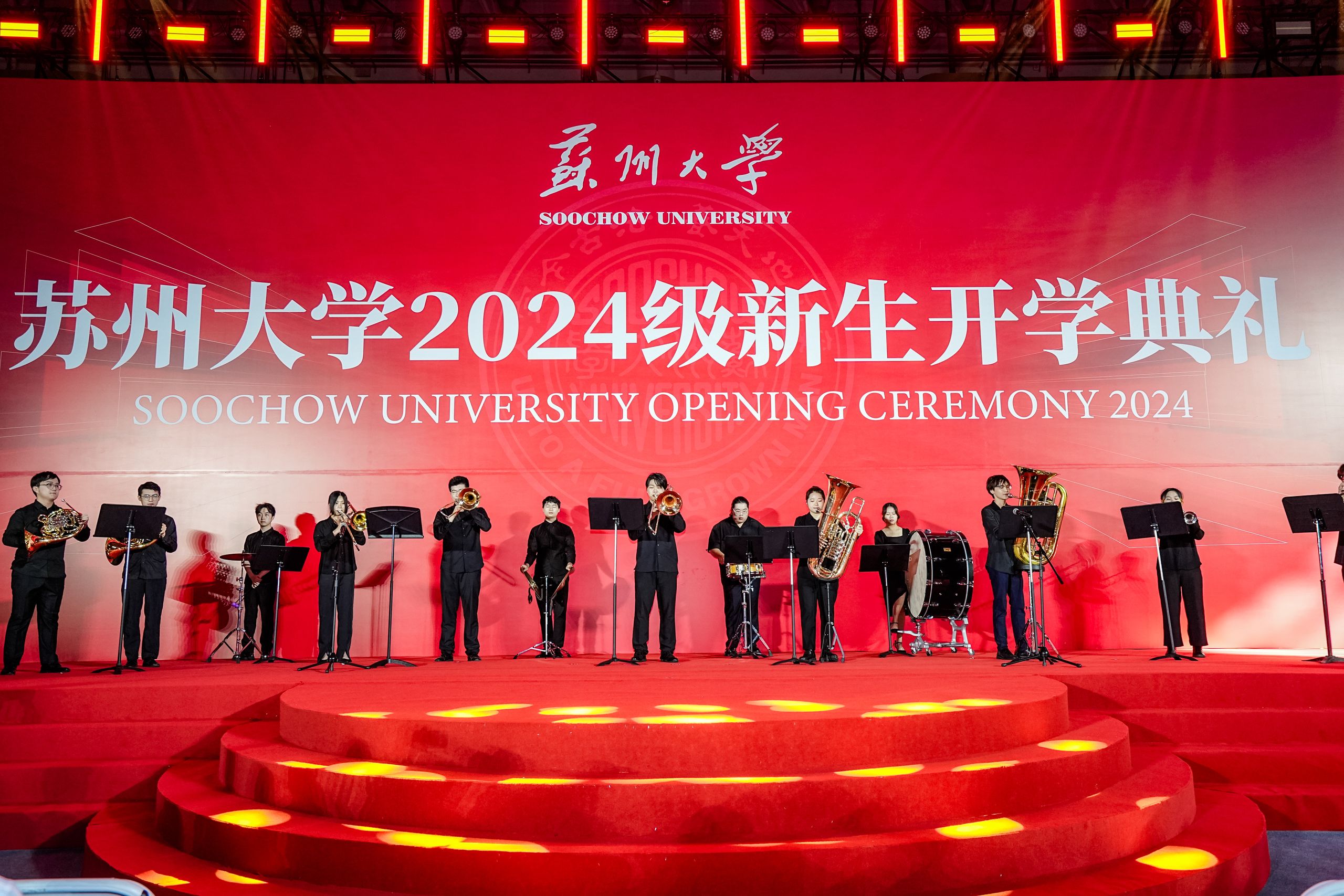 开学典礼正式开始前,艺术教育中心、音乐学院的老师们和东吴艺术团、开云唯一官网_开云(中国)有限公司交响乐团、开云唯一官网_开云(中国)有限公司合唱团的同学们联袂为大家带来了精彩的美育展演。