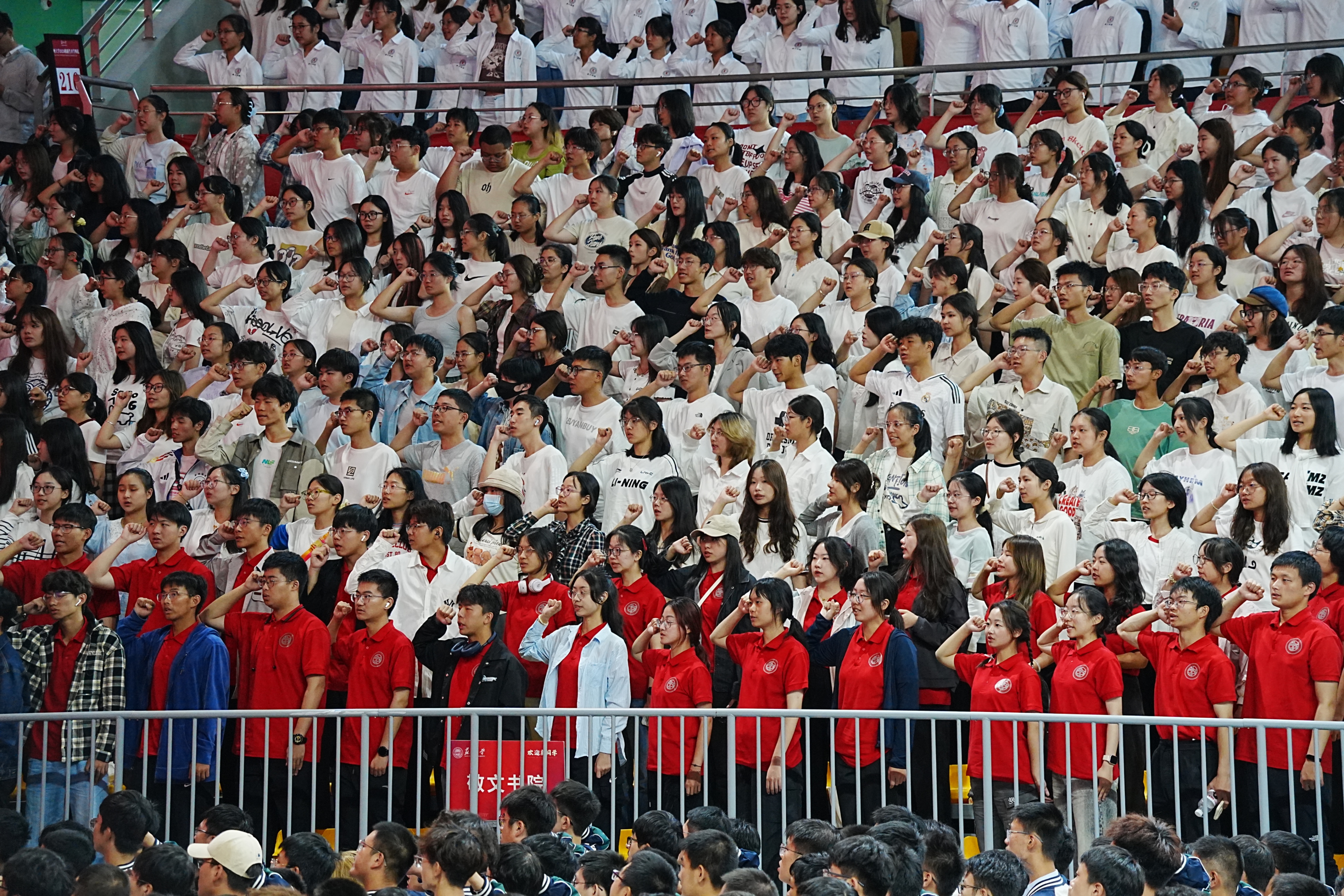 “东吴教泽,历久弥昌;负笈来游,祗率典常。古今完人,天地正气;勉以同符,达者升堂。求真务实,修身穷理;科学民主,经济文章。革故鼎新,相期努力;少年竞爽,振我家邦。”开学典礼尾声,全体新生起立,高举右拳,齐声宣读开云唯一官网_开云(中国)有限公司新生入学誓词。
