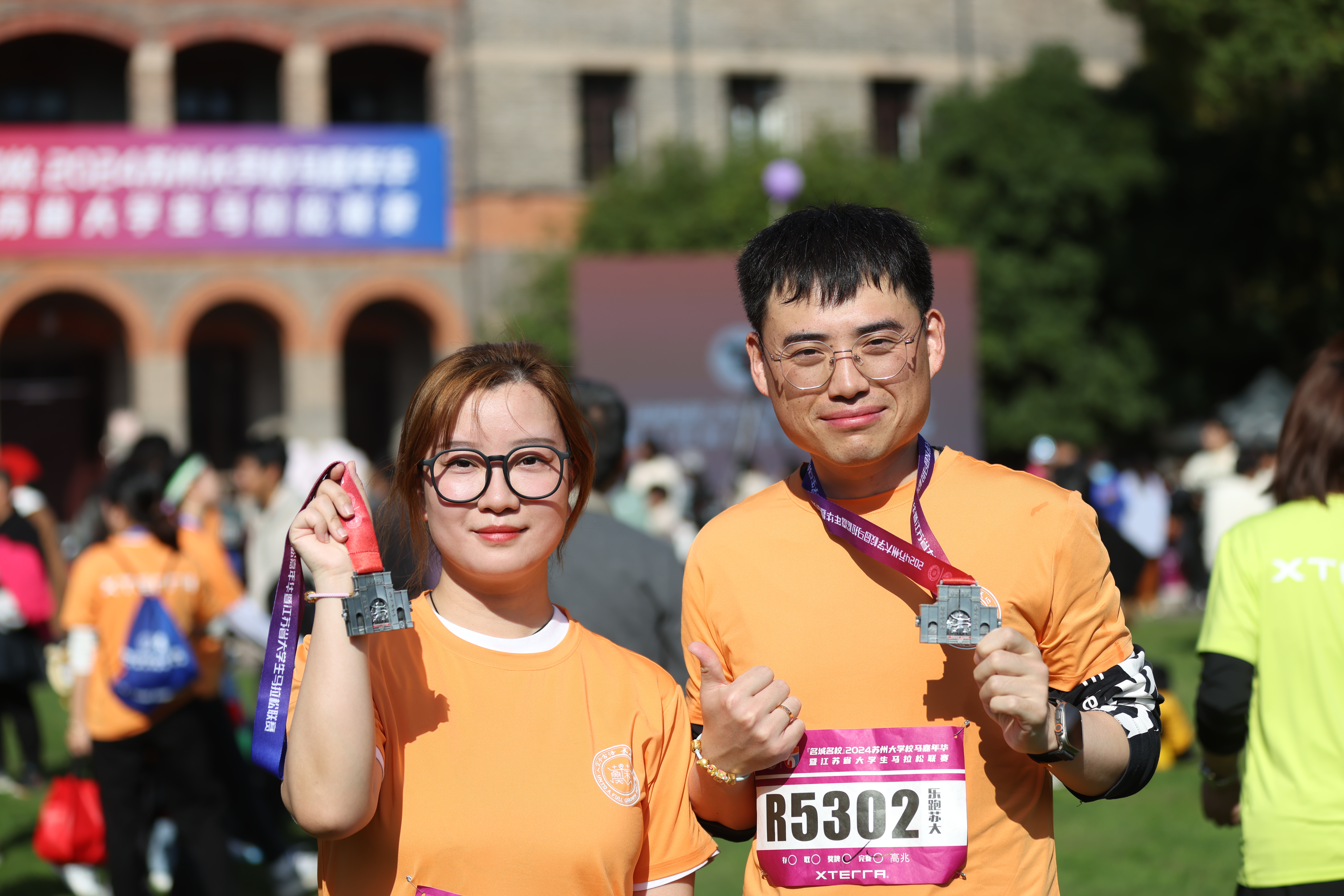 由顾婷同学设计的本届校马完赛奖牌在设计征集大赛中脱颖而出,奖牌采用“翻页”样式,以东吴大学校门为主背景,融合了校马路跑元素。谈及设计理念,她十分自豪,“马拉松需要坚定的信念和不懈的努力,希望大家能坚持热爱,用这枚奖牌纪念敢于尝试的自己。”