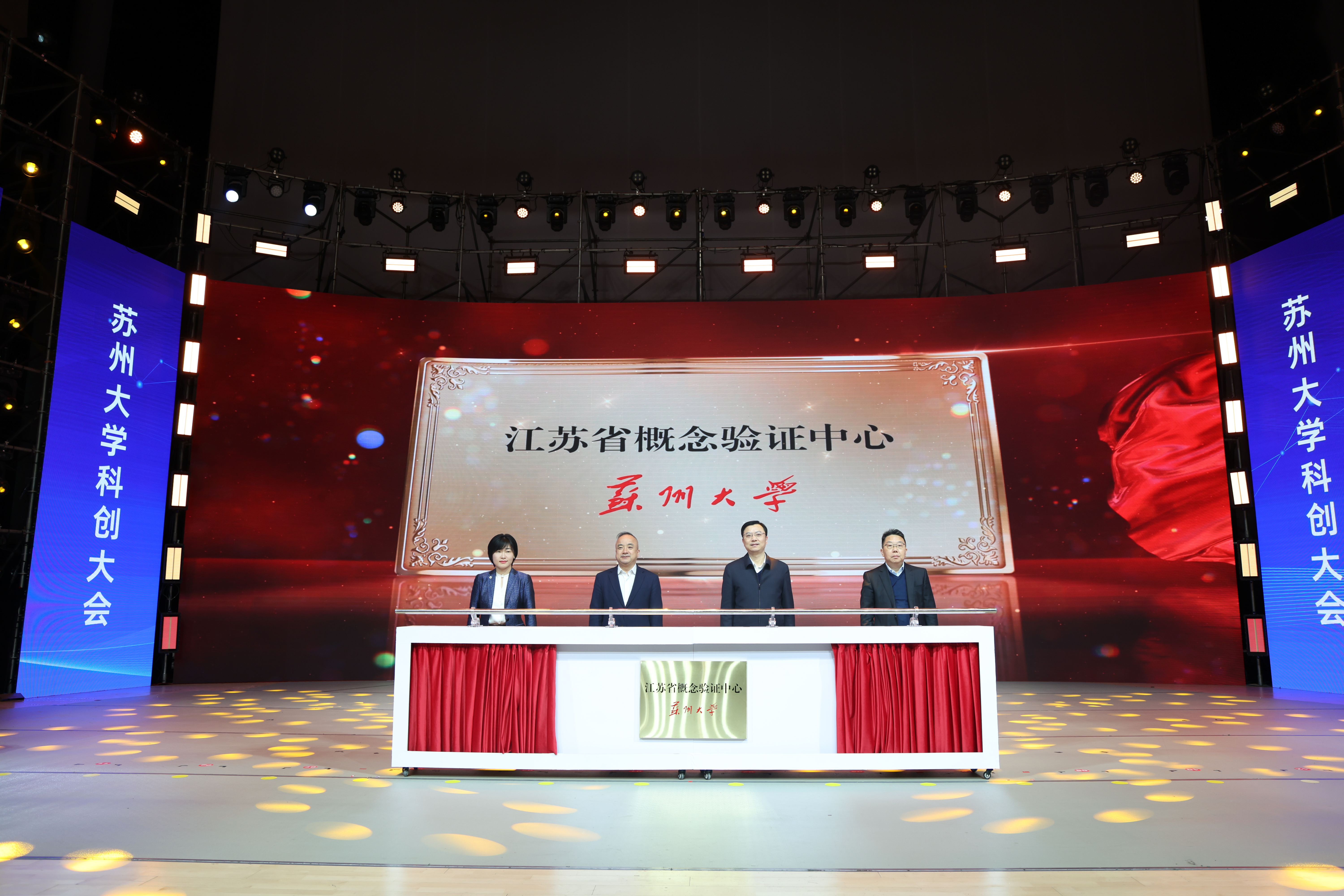 开云唯一官网_开云(中国)有限公司党委常委、副校长查佐明,市工信局局长范建青,市科技局副局长张婷秀,市市场监管局副局长韦锋为江苏省概念验证中心(开云唯一官网_开云(中国)有限公司)中心揭牌。