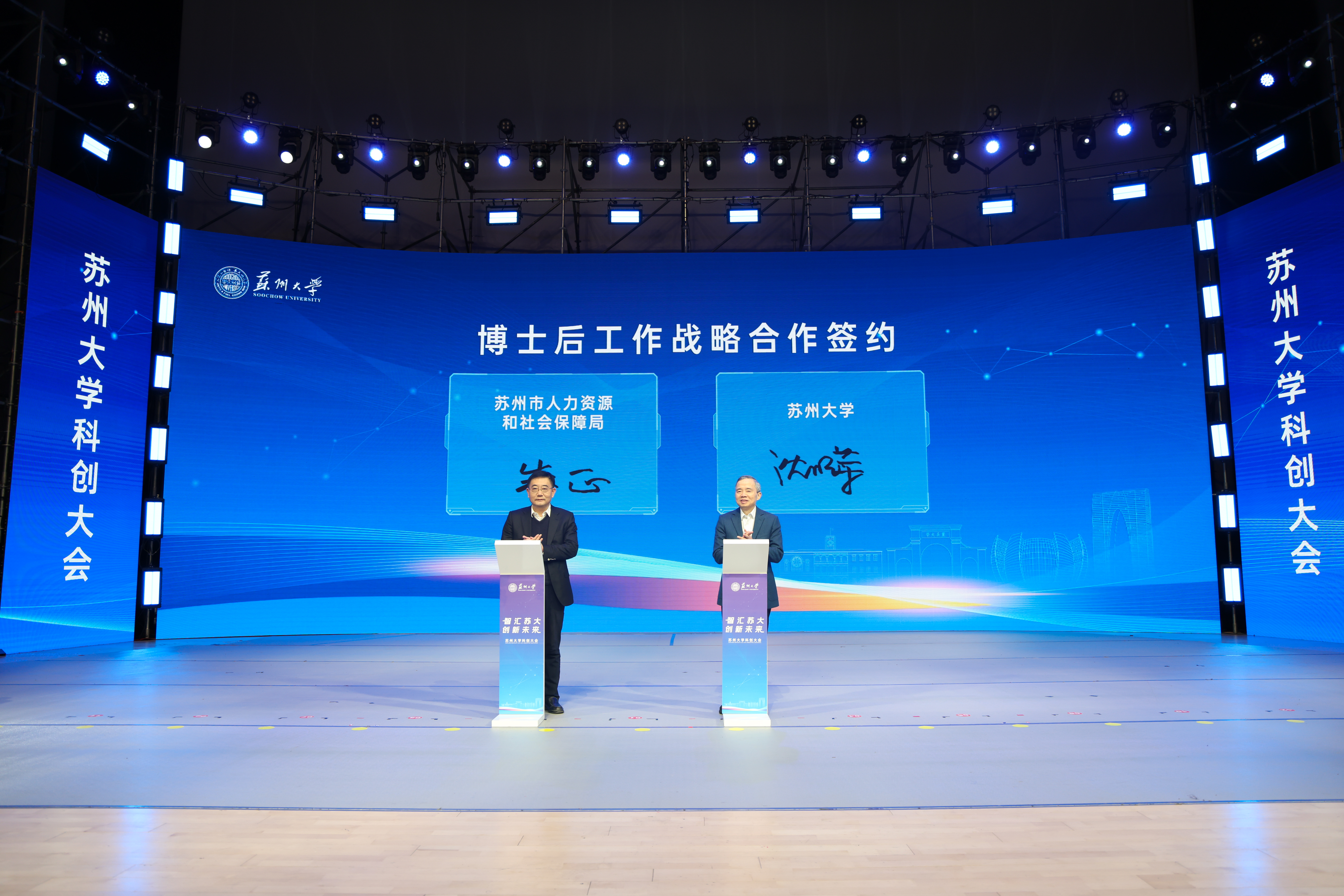 会上,苏州市人力资源和社会保障局局长、党组书记、二级巡视员朱正与开云唯一官网_开云(中国)有限公司党委副书记、副校长沈明荣进行博士后工作战略合作签约。