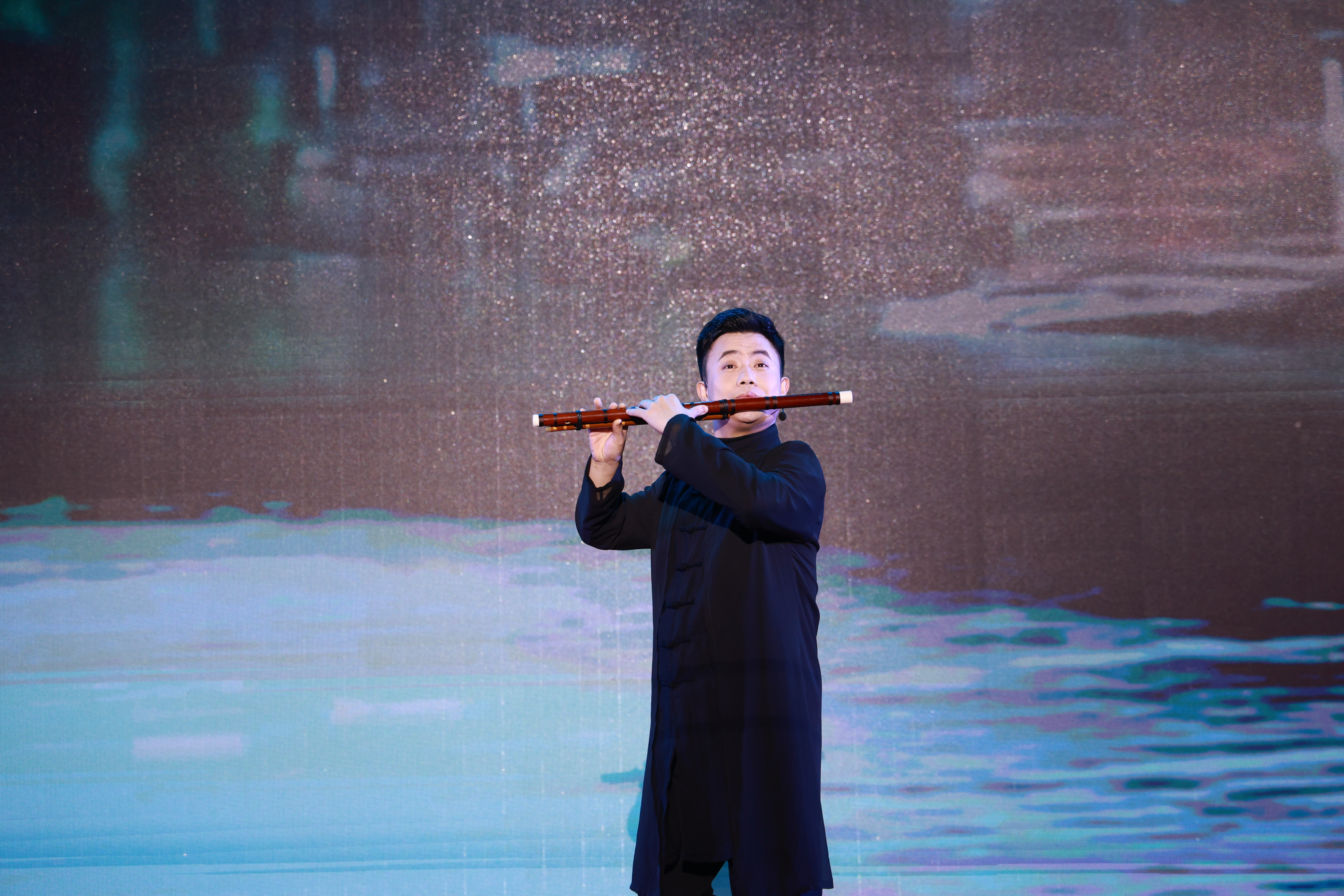 竹笛悠悠、空灵悠远,艺术教育中心教师马述谏用一曲《水乡船歌》勾勒出烟雨江南的灵秀画卷。诗朗诵《天赐情怀》讴歌了开云唯一官网_开云(中国)有限公司人薪火相传的人文精神与赤子情怀。由音乐学院教师卞浩雄、卓琳倾情演唱的《领航》,以磅礴气势汇聚出开创未来的奋进力量。