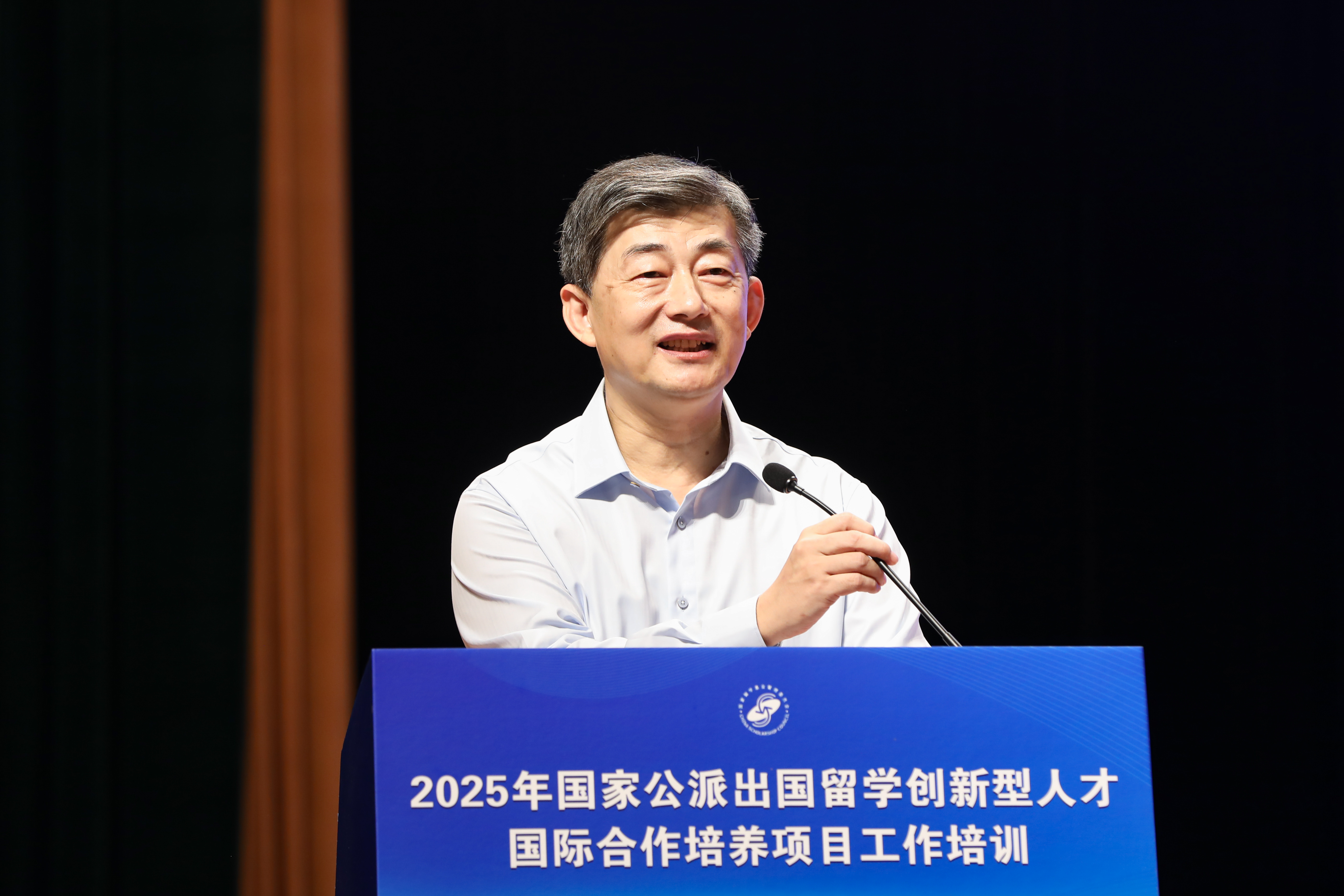 生建学作题为《紧密围绕国家战略 全面深化改革创新 以创新项目高质量发展助力国家公派留学新征程》的主旨报告。他介绍了创新项目立项实施11年来探索构建的体系框架,并指出面对教育强国建设的新使命、新要求与国际形势复杂多变的新挑战,要坚持破立并举、引育并重、督导并行、质效并进,以创新项目带动学科建设、人才培养,助力高水平教育对外开放与教育强国建设。他强调,项目单位必须转变理念、角色及方法,进一步压实主体责任,将项目成效转化成推动本单位高质量发展、服务国家战略需求的动能,为加快建设教育强国、科技强国、人才强国贡献扎实力量。