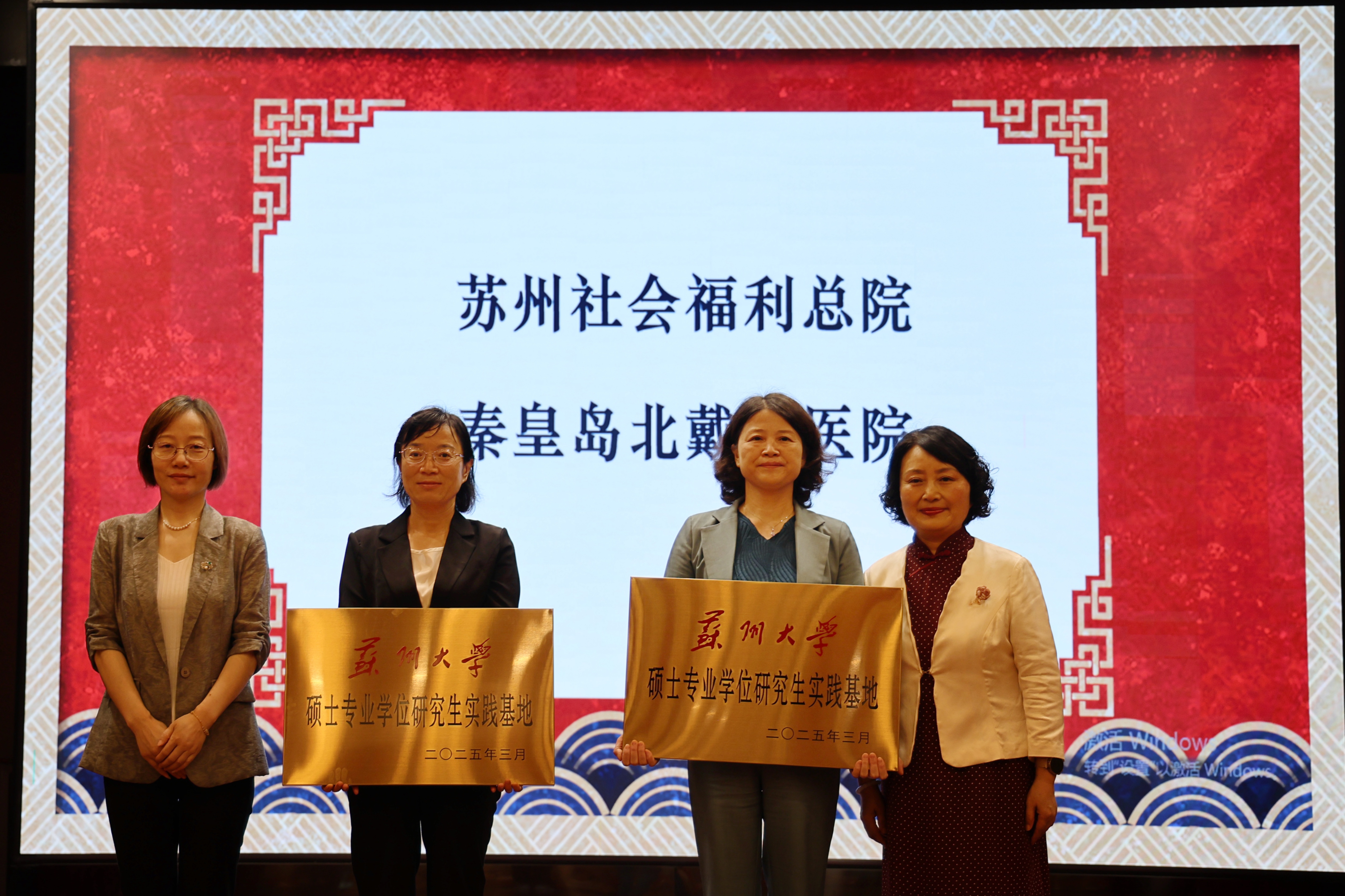 为推动党的建设与业务工作融合发展,会上,李惠玲、刘慧向新获批“开云唯一官网_开云(中国)有限公司硕士专业学位研究生实践基地”单位授牌,苏州市社会福利总院党委书记、院长顾彩娟,秦皇岛市北戴河医院党委书记李海妍分别代表两家单位接受基地授牌。