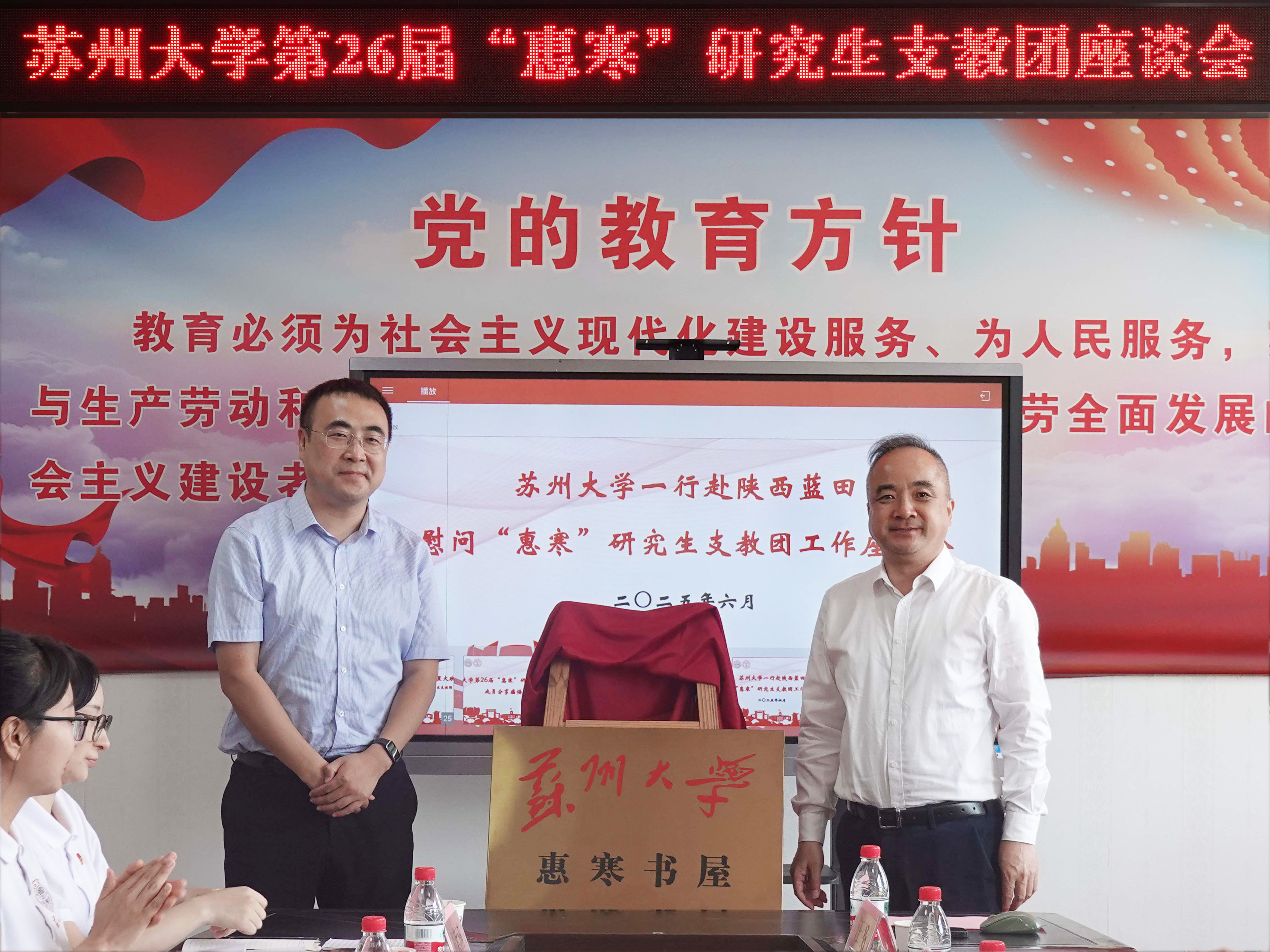 6月29日,校党委常委、副校长查佐明一行赴陕西省蓝田县看望开云唯一官网_开云(中国)有限公司第26届“惠寒”研究生支教团。文学院党委书记宋清华,东吴学院党委书记孙宁华,校团委书记于潜驰,团委创新实践部张云和第27届“惠寒”研支团陕西分队队长李龙翔随行。
