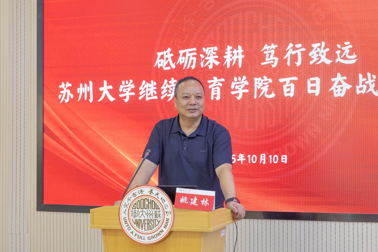 10月9日至10日,继续教育学院举行“砥砺深耕、笃行致远”百日奋战活动,经工作部署、主题研讨、启动大会等多项环节,统一“百日奋战”思想认识,明确目标方向,确保各项工作有序推进。校党委常委、副校长姚建林出席启动大会,继续教育学院院长缪世林、副院长董娜、副院长沈晔及学院全体教职工参会。会议由缪世林主持。